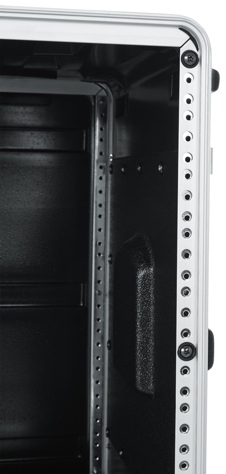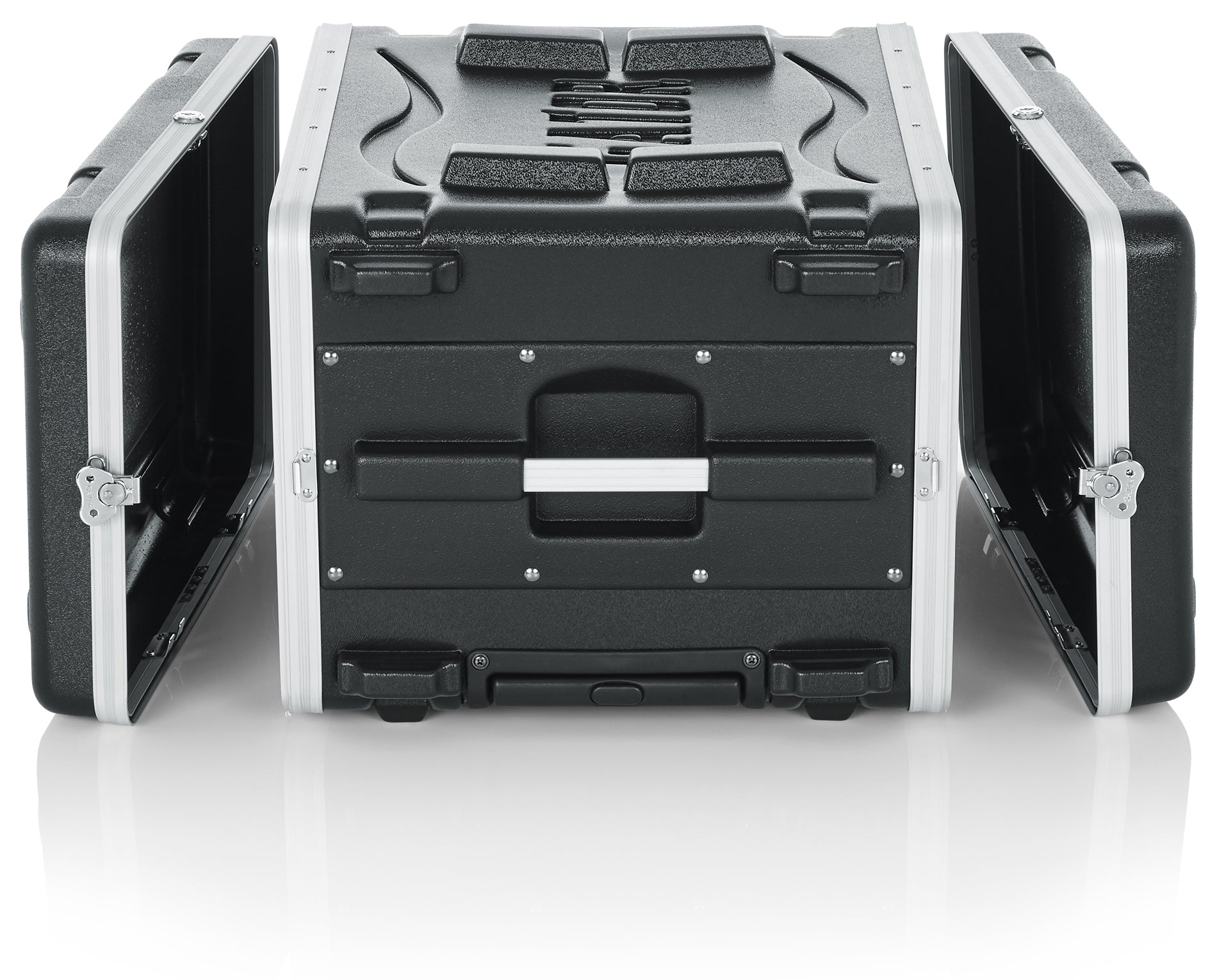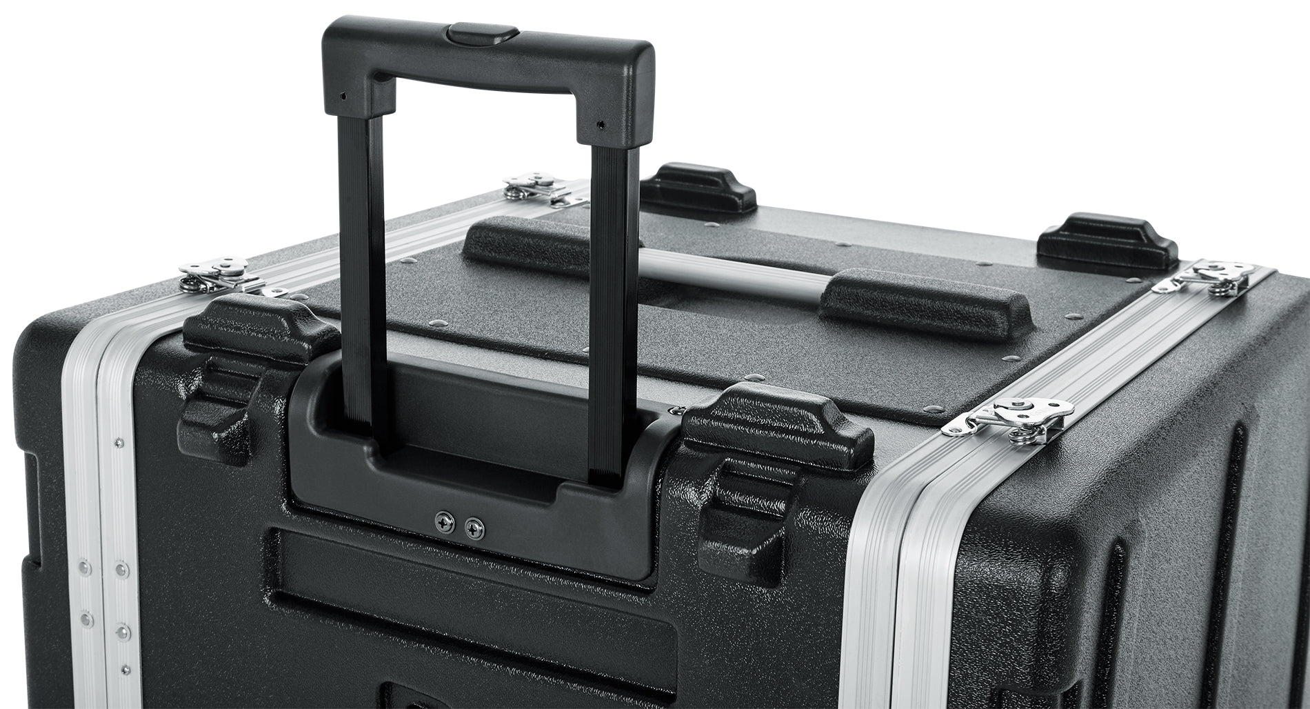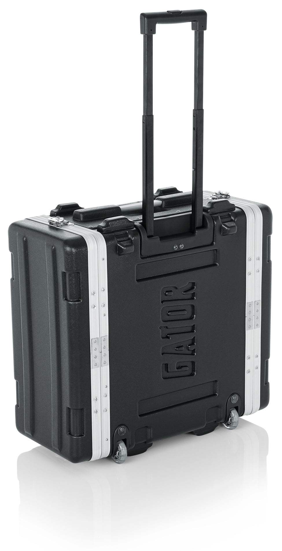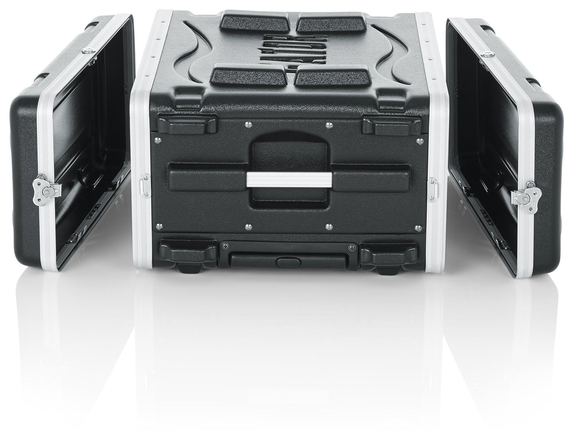 Molded PE Rack Case; Front, Rear Rails; 4U; 19″ Deep; Locking, Pull Handle, Recessed Wheels; w/ Power Supply