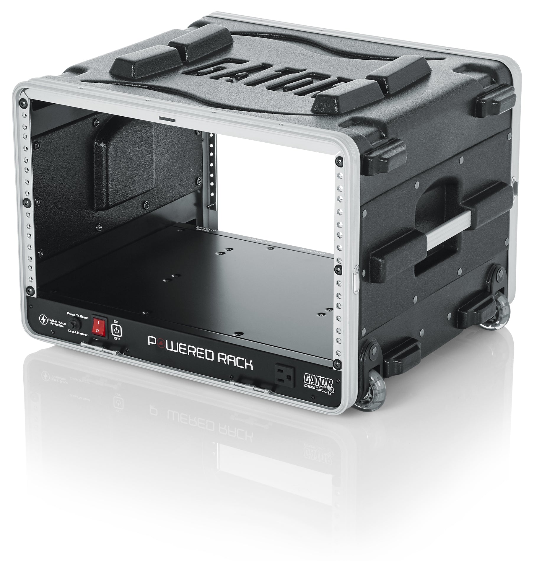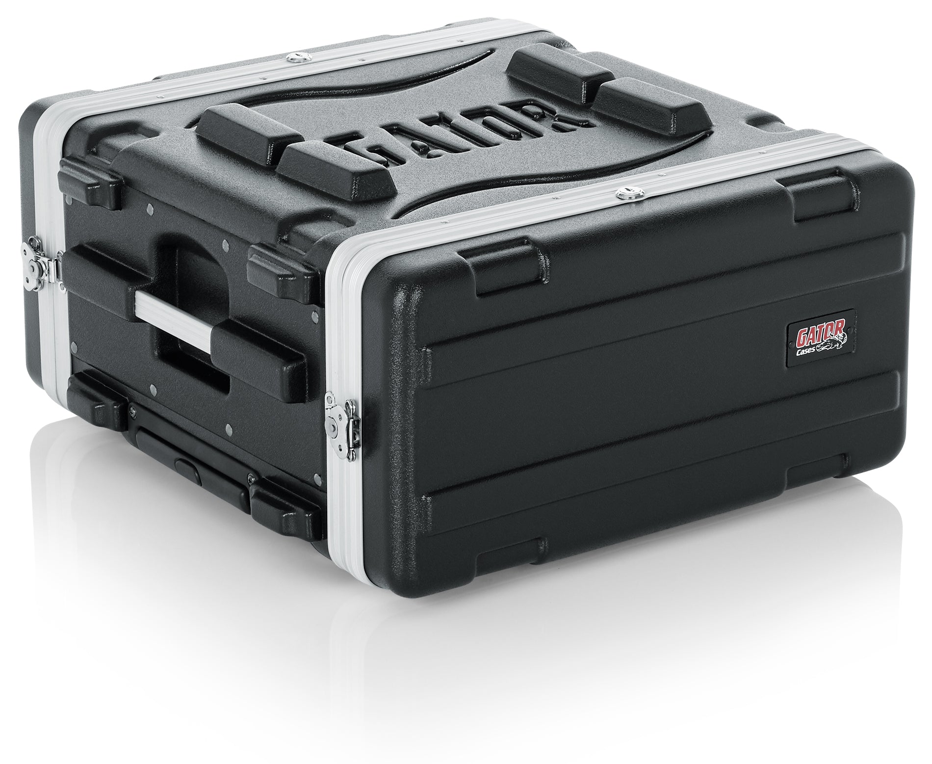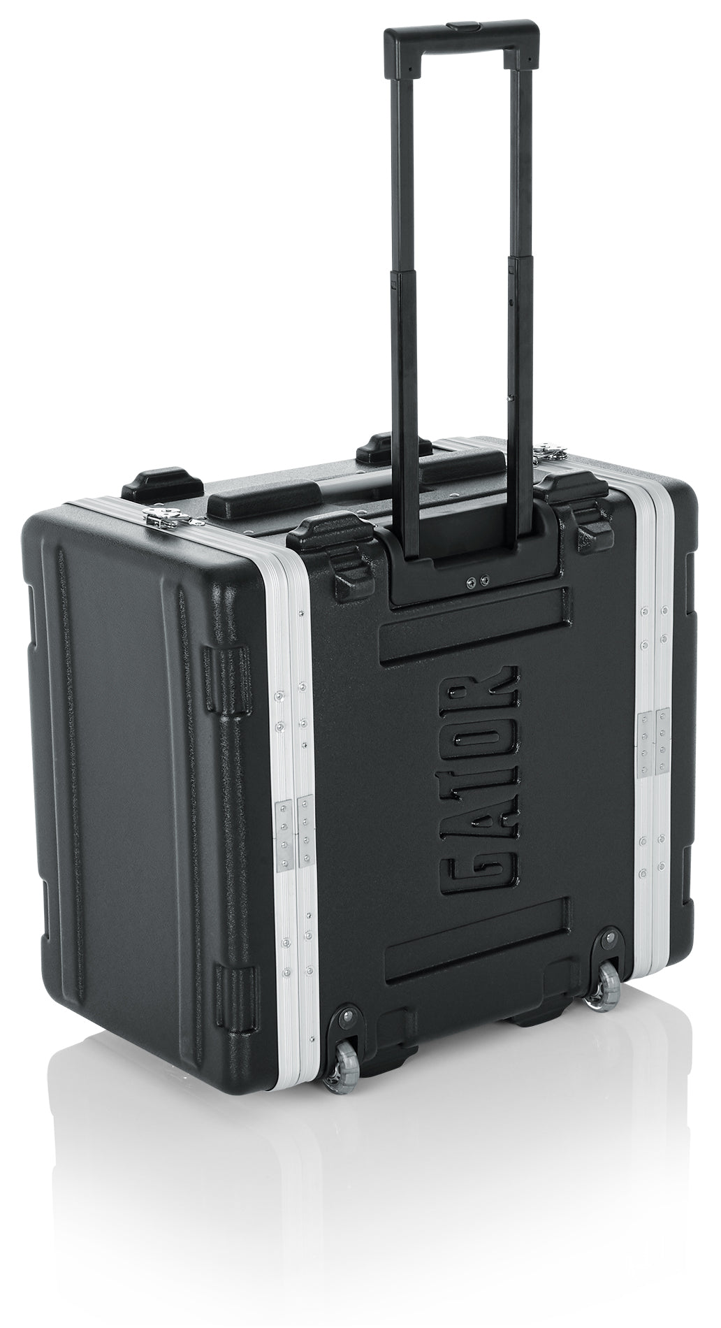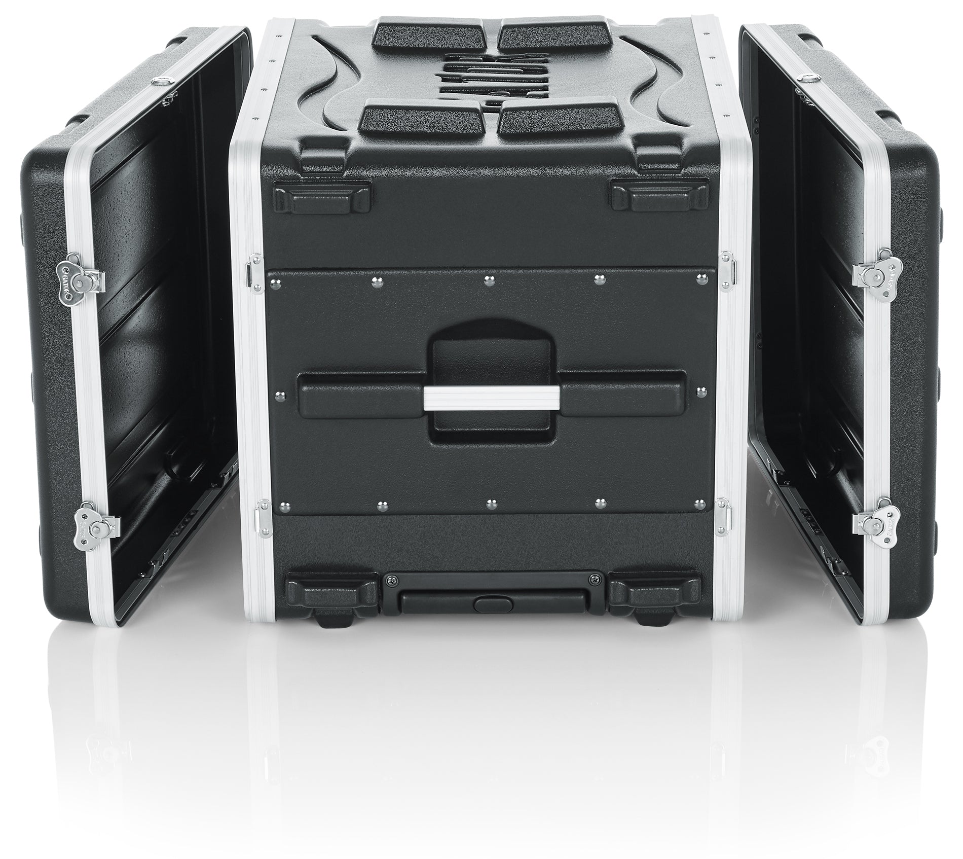 Molded PE Rack Case; Front, Rear Rails; 4U; 19″ Deep; Locking, Pull Handle, Recessed Wheels; w/ Power Supply