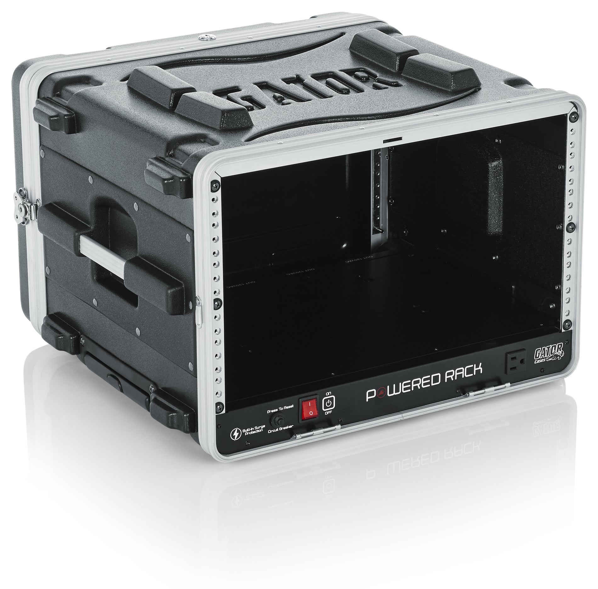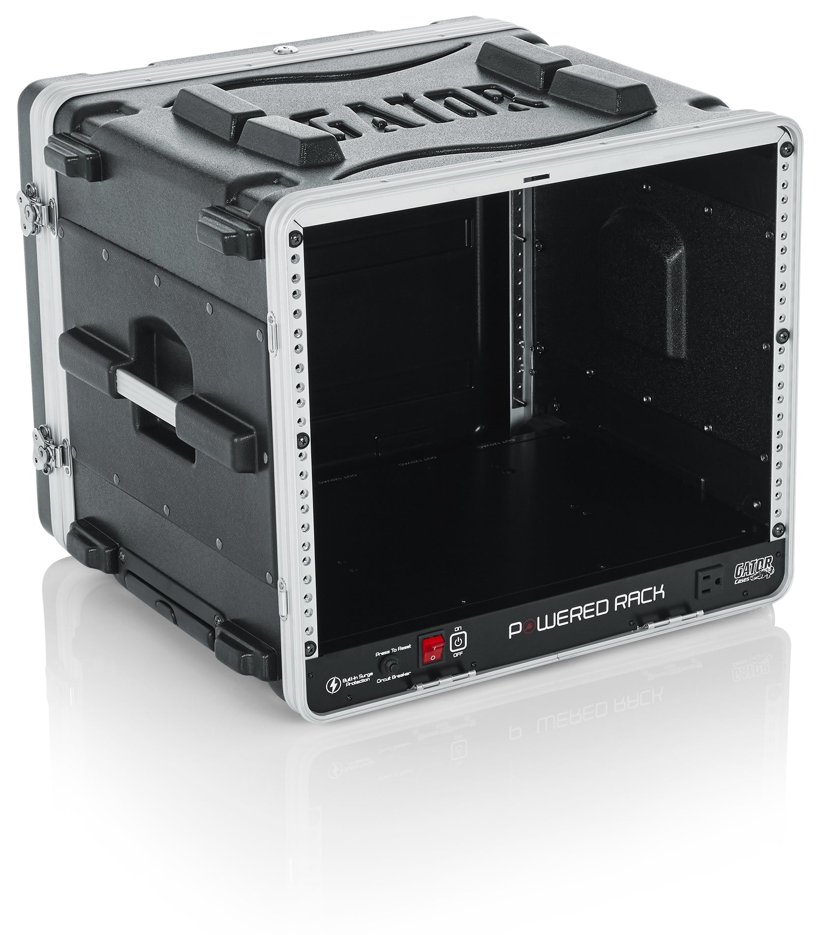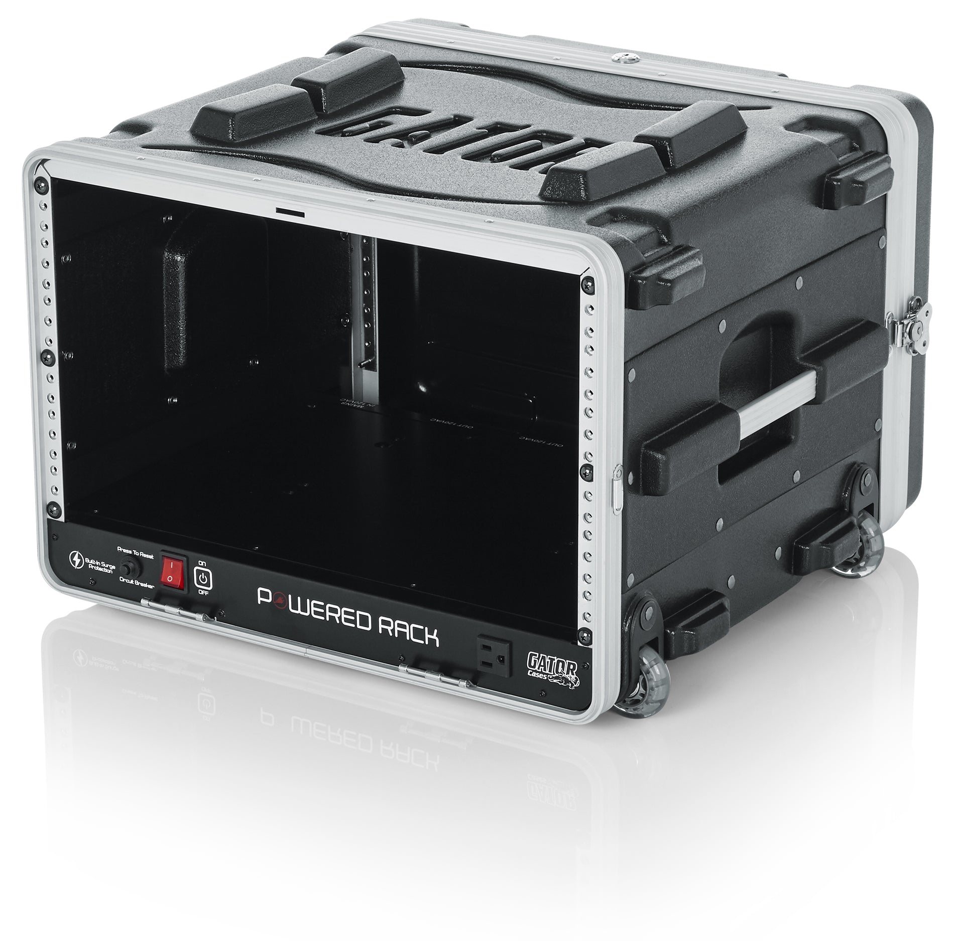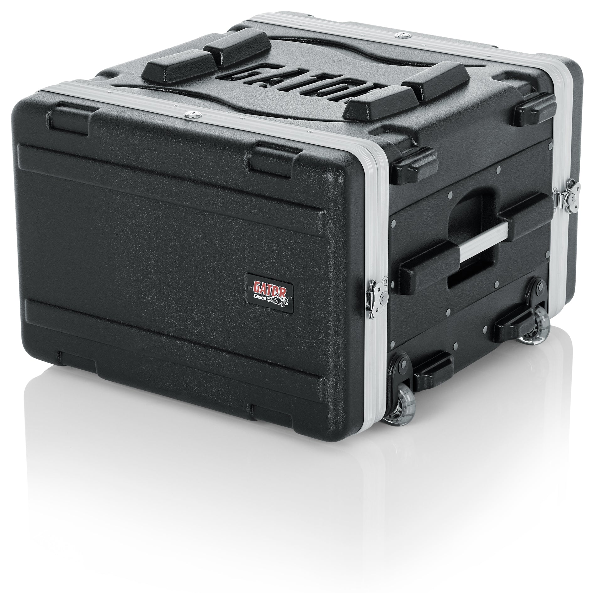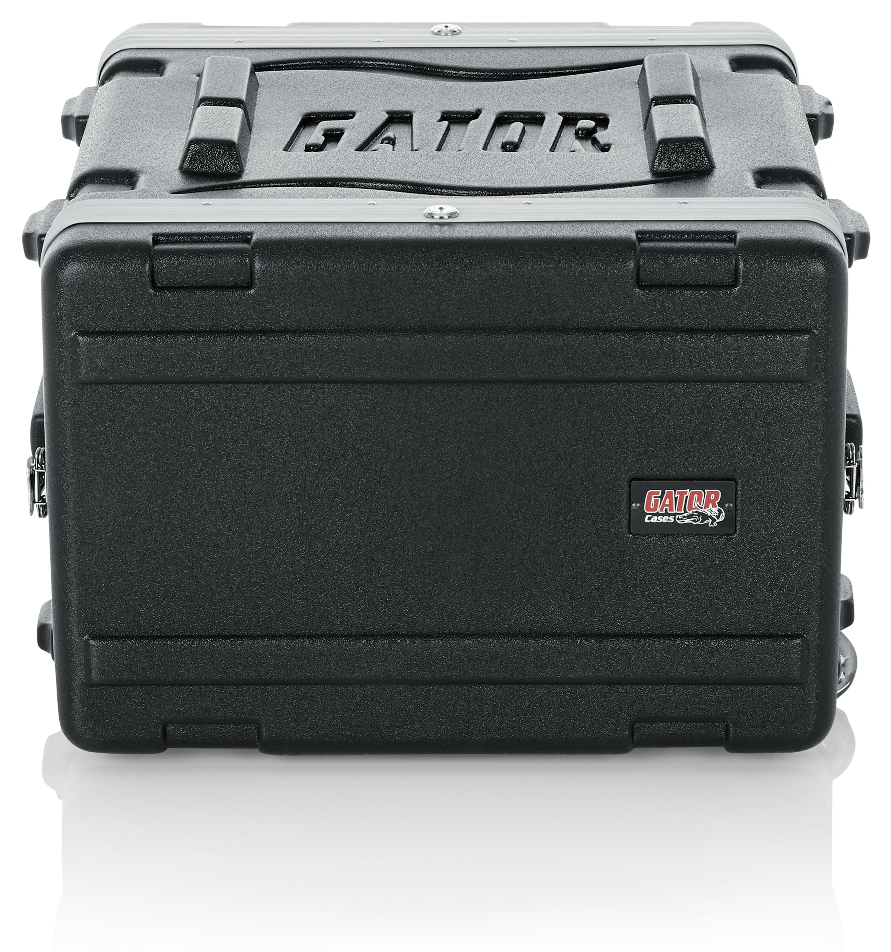 Molded PE Rack Case; Front, Rear Rails; 4U; 19″ Deep; Locking, Pull Handle, Recessed Wheels; w/ Power Supply