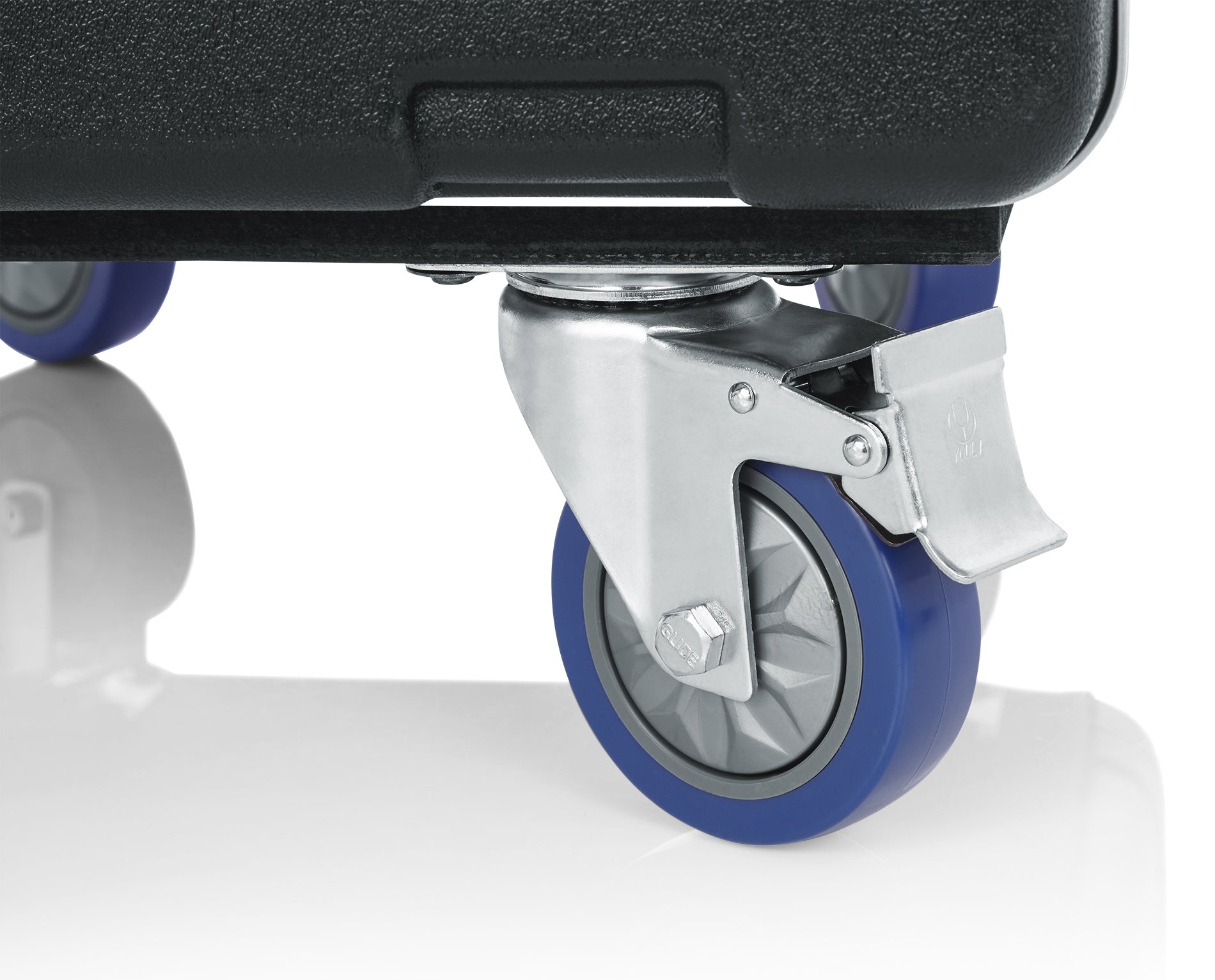 - 4" heavy-duty industrial caster, 2 of which are locking