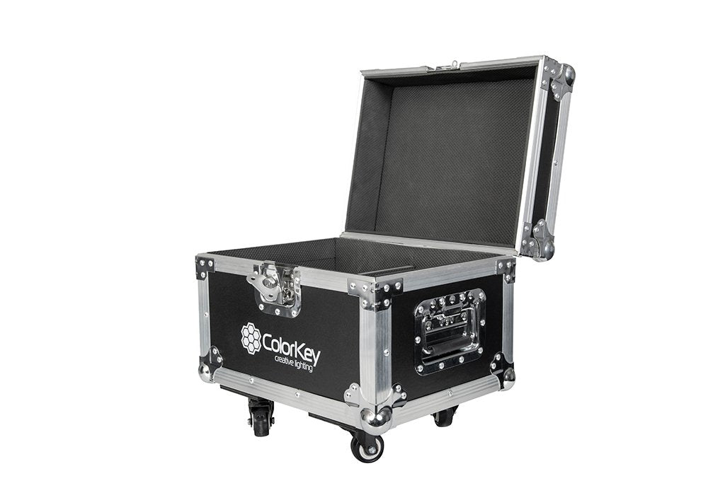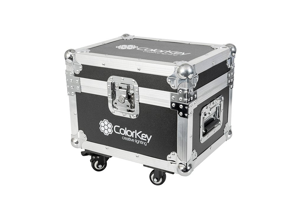 Built to withstand the rigors of life on the road, the ColorKey Dazzler FX 2pc Road Case will fit two ColorKey Dazzler FX Cold Spark Machines (sold separately) and included accessories. Our heavy-duty flight case features steel ball corners, aluminum profiles, recessed spring-loaded handles, and a butterfly latch. In addition to protecting your gear, the ColorKey Dazzler 2pc Road Case is designed for ease of use. It features an easy locking tongue and groove lid with ample interior space for extra cable management. Caster wheels are included for smooth transport to and from your vehicle to event space.