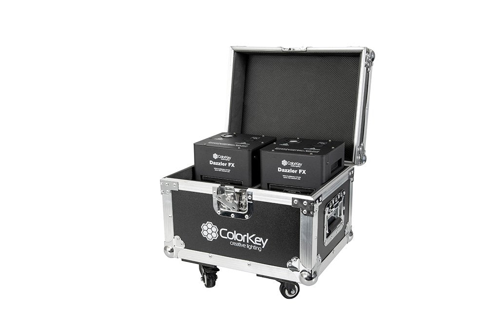 The ColorKey Dazzler FX 2pc Road Case with casters is made to fit two Dazzler FX Cold Spark Machines and accessories, for easy transport to and from events.