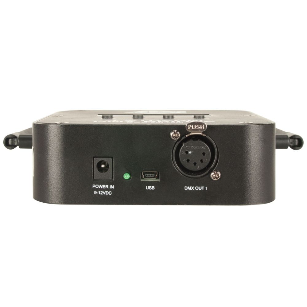- Supports up to 4 DMX Universes (3 wired and 1 WiFLY wireless)