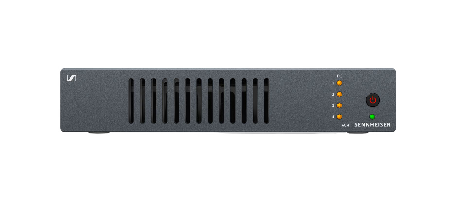 Active antenna combiner for evolution wireless G4 systems. The AC 41 operates up to four wireless stereo transmitters from the ew series using one shared antenna. Power is supplied to the SR IEM G4 transmitters over the BNC cables via NT 3-1 power supply (included with the AC 41), making separate power supplies for the transmitters obsolete.