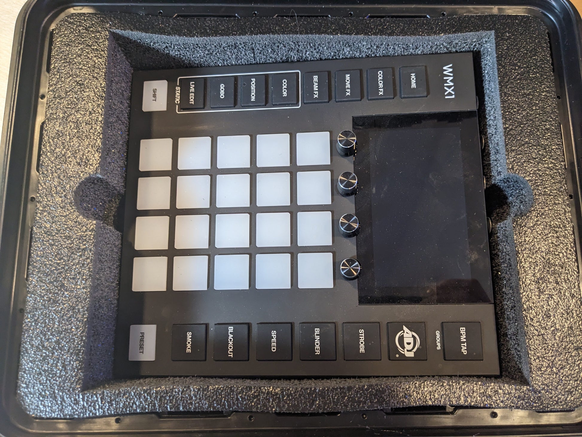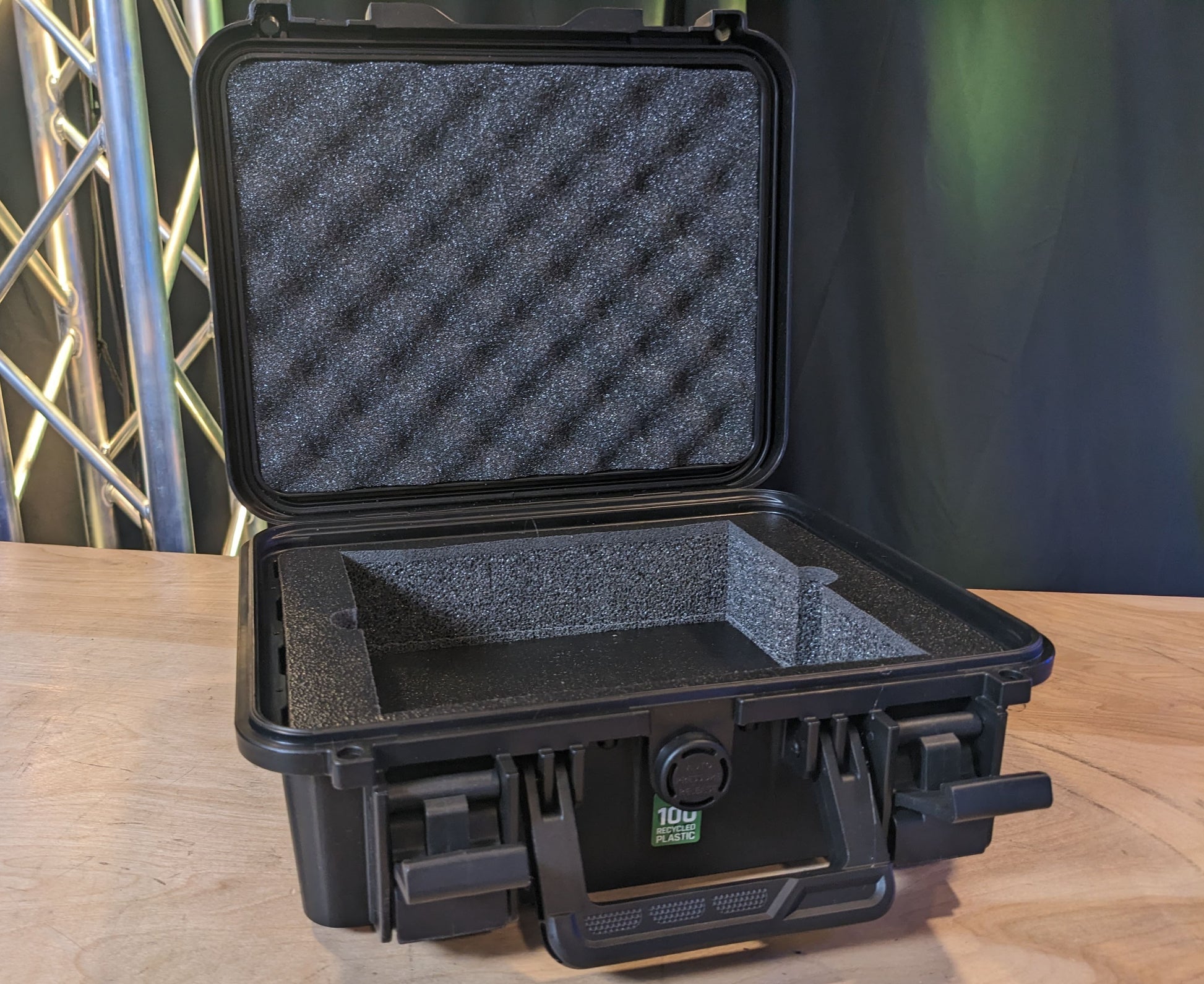 This is a custom-cut case for the ADJ WMX1 made from a Pelican-style case with custom cut foam to fit the WMX1 perfectly!