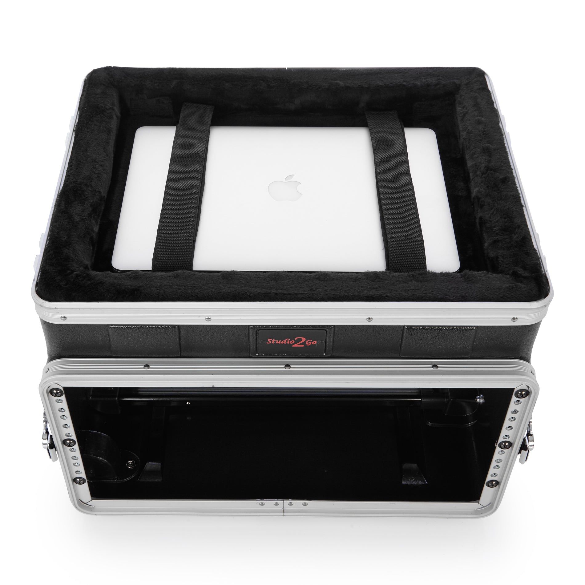 - Access hole between top & bottom compartments allow the laptop to be permanently connected to the recording gear
