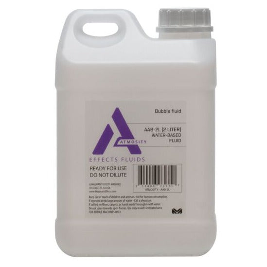 The Atmosity AAB™ is a transparent water-based bubble juice that was formulated to work with most bubble machines. The AAB bubble juice produces hundreds of high-flying bubbles with an average hangtime of 20-30 seconds under optimal conditions.