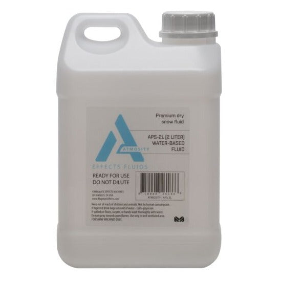 The Atmosity APS fluid is a premium, dry-on-impact snow liquid formulated for the Magmatic Polar™ series, as well as most other water-based snow machines. The Atmosity premium snow fluid has been engineered to produce a high volume of realistic snow for both indoor and outdoor applications.