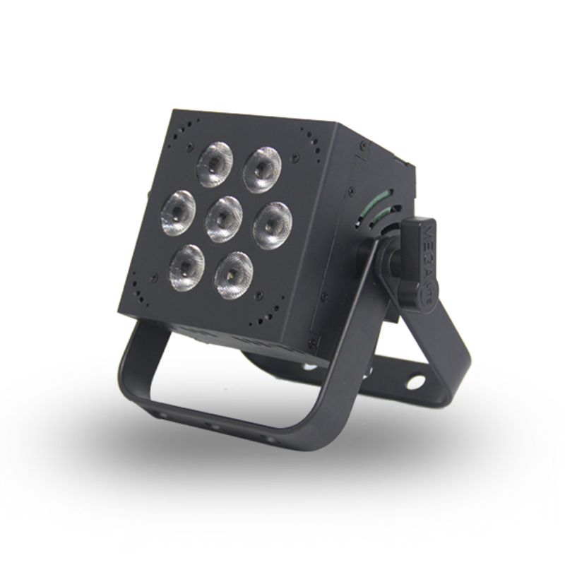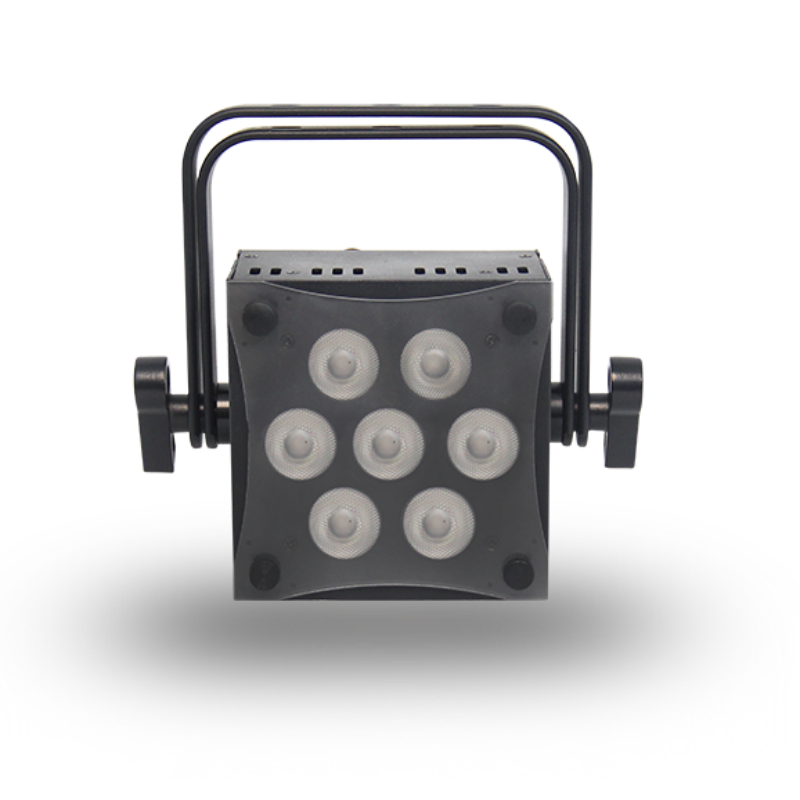 The Baby Color H84 is an ultra-compact, bright color-changing fixture. Equipped with 7 12-watt LEDs, the output of the Baby Color H84 contends with the output of larger fixtures. The RGBWAUV LEDs produce a wide range of vibrant colors with the ability to add UV for an eerie hue effect. The fixture has a 20° beam angle and comes with a diffuser that increases the beam angle to 25°.
