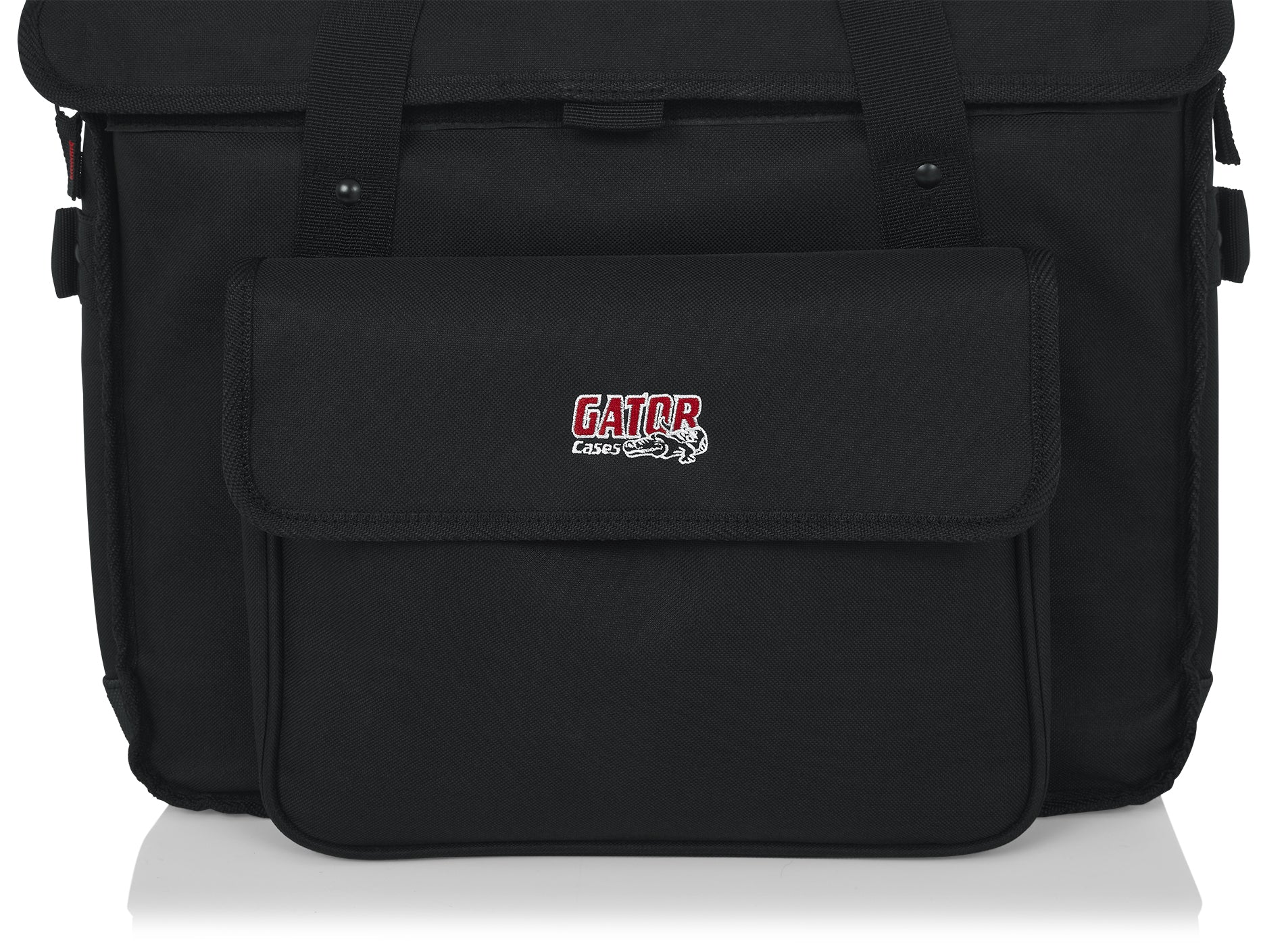 Large exterior storage pocket for audio cables and accessories