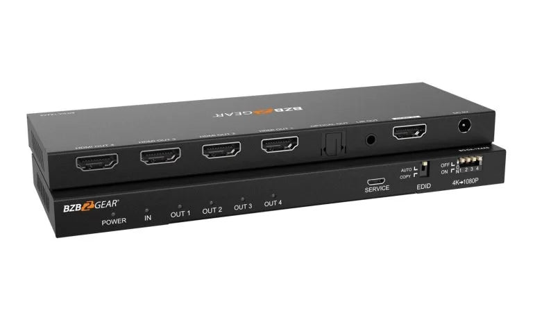 One of the key features of the BZB 4K HDMI Splitter is its selectable 4K to 1080P downscaler for each output, which allows for compatibility with legacy displays. This feature makes it a versatile choice for installations that require flexible and adaptable video solutions.