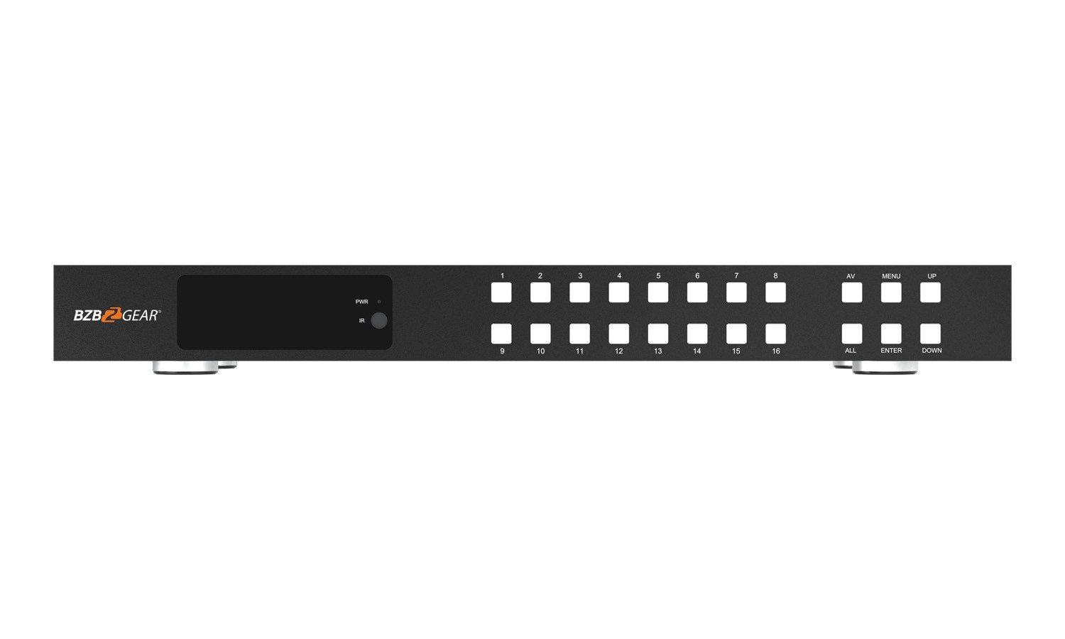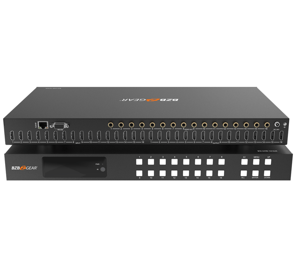 The BZBGEAR BG-UHD-1616M is a 4K HDMI matrix switcher offering unparalleled control over multiple displays simultaneously, up to 16 inputs & outputs.