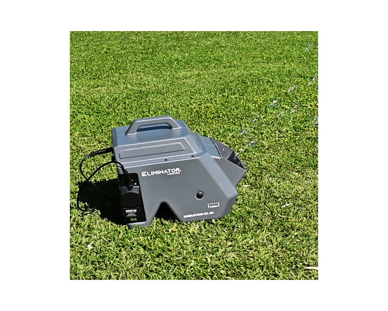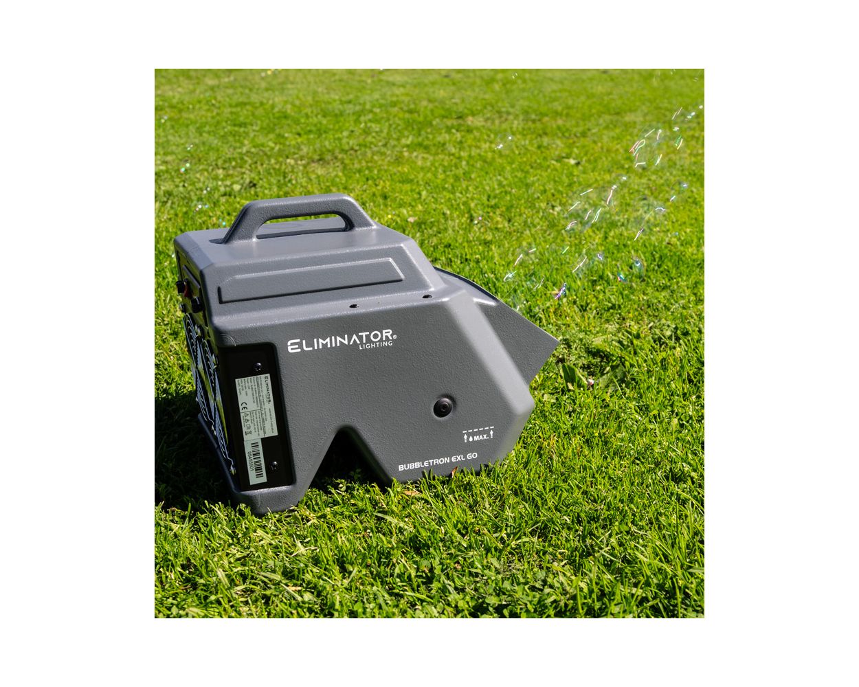 Add a touch of bubble magic anywhere you go! The Eliminator Lighting Bubbletron EXL GO, the ultimate battery-powered bubble machine for adding a touch of magic to your stage or mobile performance or party. Effortless to use, simply pour in the bubble juice, switch it on, and let the Bubbletron EXL GO work its bubbly magic. With its high-output fan and dual bubble wands, this portable wonder generates hundreds of bubbles per minute, ensuring a mesmerizing display. The extra-large, durable casing and unique dual fan system propel bubbles further into the air. Its 2-liter fluid tank and 4.0Ah battery provide 3 hours of non-stop operation. Perfect for bands, DJs, clubs, event producers and stages, the Bubbletron EXL GO comes complete with a BUBGO-WR Wireless Remote Control for added convenience.
