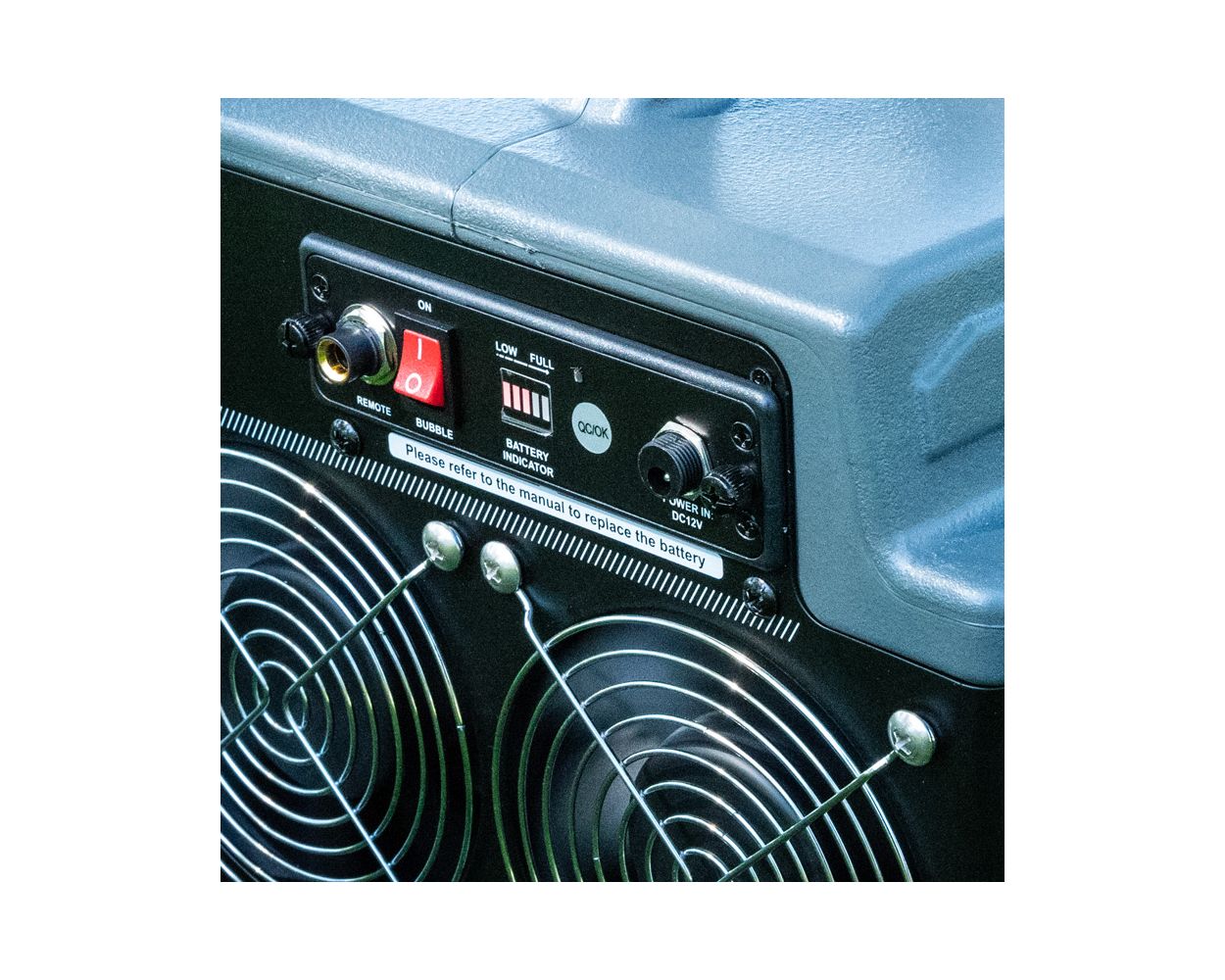 Extra-large, durable plastic casing with EZ-Access front fluid tank