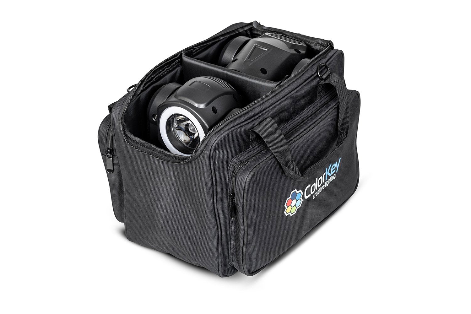 The ColorKey 2pc Mini Moving Head Bag is a compact and practical solution to carry two mini moving head lights, such as the Mover Halo spot, Mover Halo Beam QUAD MKII, Miniwash Quad 4 MKII, and Mover Wash HEX 12, or one larger moving head such as the Mover Spot 150.