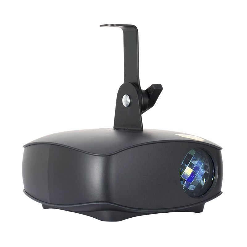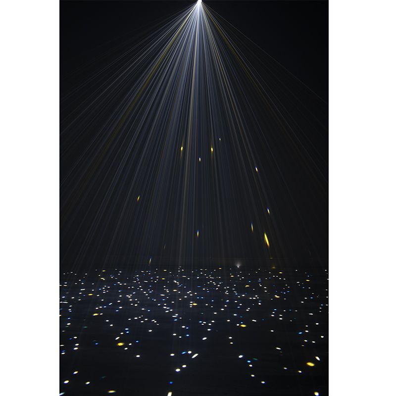 The Eliminator Lighting Cosmic Burst is a futuristic Moonflower effect with high output powered by a 10W laser module. It creates hundreds of white, yellow, green and blue beams of light that rotate back and forth from two independent mirror dishes. Its massive beam spread makes it ideal for projecting on ceilings and walls at nightclubs, roller rinks, fun centers, stages and live events, and works with or without the use of atmosphere in the air (fog/haze).