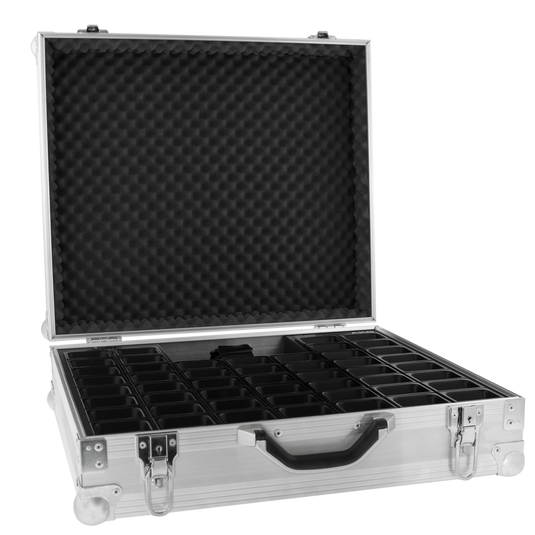 The AKG CSX CU50 flight-case charger conveniently and securely transports and charges up to 50 CSX IRR10 infrared receivers.