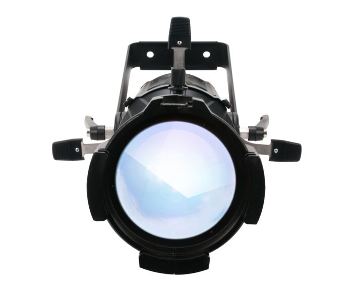 The IP65 rated CW Profile HP IP™ ellipsoidal features a High Power 130W Cool White 5,600K LED engine producing >90CRI 12,000+ total lumens, 19°, 26°, 36°, and 50° interchangeable lens options (sold separately), (4) blade manual framing shutters, supports B size metal gobos (2 sample gobos included, single gobo holder not included) and an optional IP65 rated DMX controlled dual gobo rotator (sold separately), manual focus, DMX controlled electronic strobe, 16bit dimming and selectable dimming curve modes, flicker free operation for TV and FILM, adjustable refresh frequency and gamma brightness, IP rated 5pin DMX and IP65 Locking Power Cable in/out connections, (4) button LCD control display panel, an integrated rigging yoke, quiet fan cooling, and a multi-voltage universal auto switching power supply (100-240v).