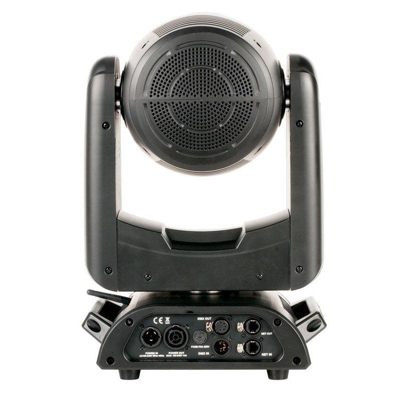 The DARTZ 360™ is a unique, compact, narrow beam luminaire featuring a new patent pending single source 50W RGB LED engine producing an impressive 3° aperture, amazing high output level, and smooth color-mixed effects that can be used in a variety of applications requiring no minimum safe project distance as with typical discharge lamp beam fixtures, fast and precise 16-bit continuous 360° pan and tilt rotation, 14 static-stamped metal gobos, 6-facet linear and 8-facet independent rotating prisms, 0-100% linear frost filter for wash effects, high speed electronic shutter and strobe, electronic dimming and variable dimming curve modes, adjustable LED refresh rate and gamma brightness for flicker free operation for TV and FILM, DMX, RDM (Remote Device Management), Kling-Net, Art-NET, and sACN protocol support, Elation’s E-FLY™ internal wireless DMX transceiver, 5pin XLR, RJ45 ethernet, and Locking Power Cable in/out connections, full color 180° reversible menu display with multi-button control panel, battery backup for display power, and a multi-voltage universal auto switching power supply (100-240v).