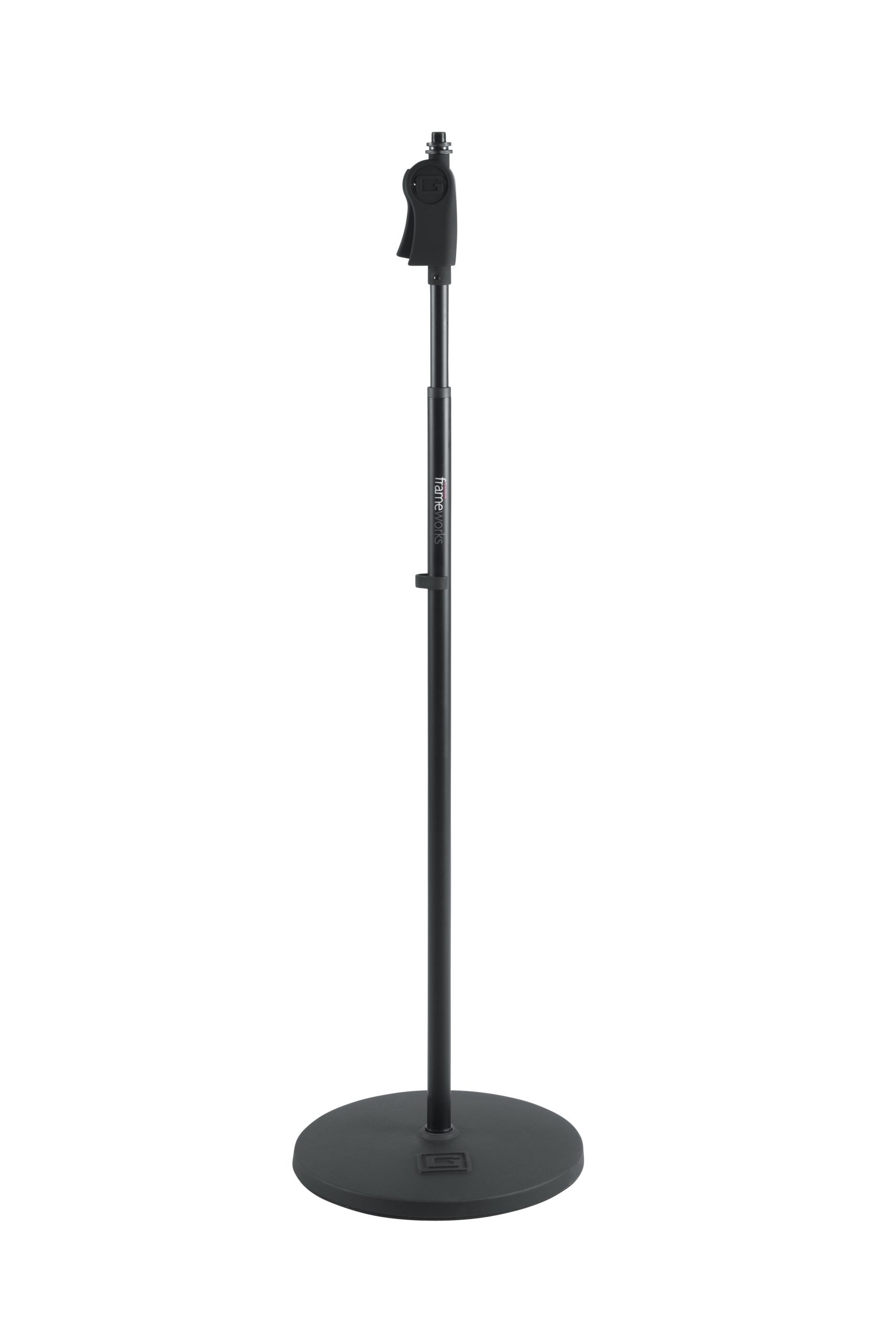 Frameworks Roundbase Mic Stand with 12″ Round Base and Deluxe One-Handed Clutch