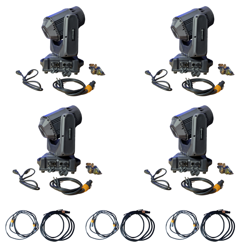 Packages contain the quantity of fixtures and (-1) of 10' Waterproof DMX Cables and True1 Power Linking Cables. For example, the 4 Pack is: