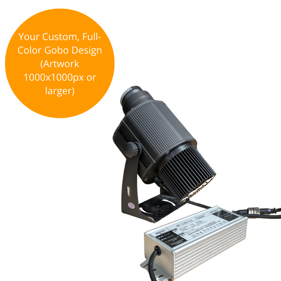 The Dominar GM LED Gobo Projector is a small, waterproof Gobo projector that can accept custom Gobos. It is perfect for shining on buildings, walkways, and more! Rotation is available and can be switched on and off as desired. This is a stand-alone, non-DMX fixture.