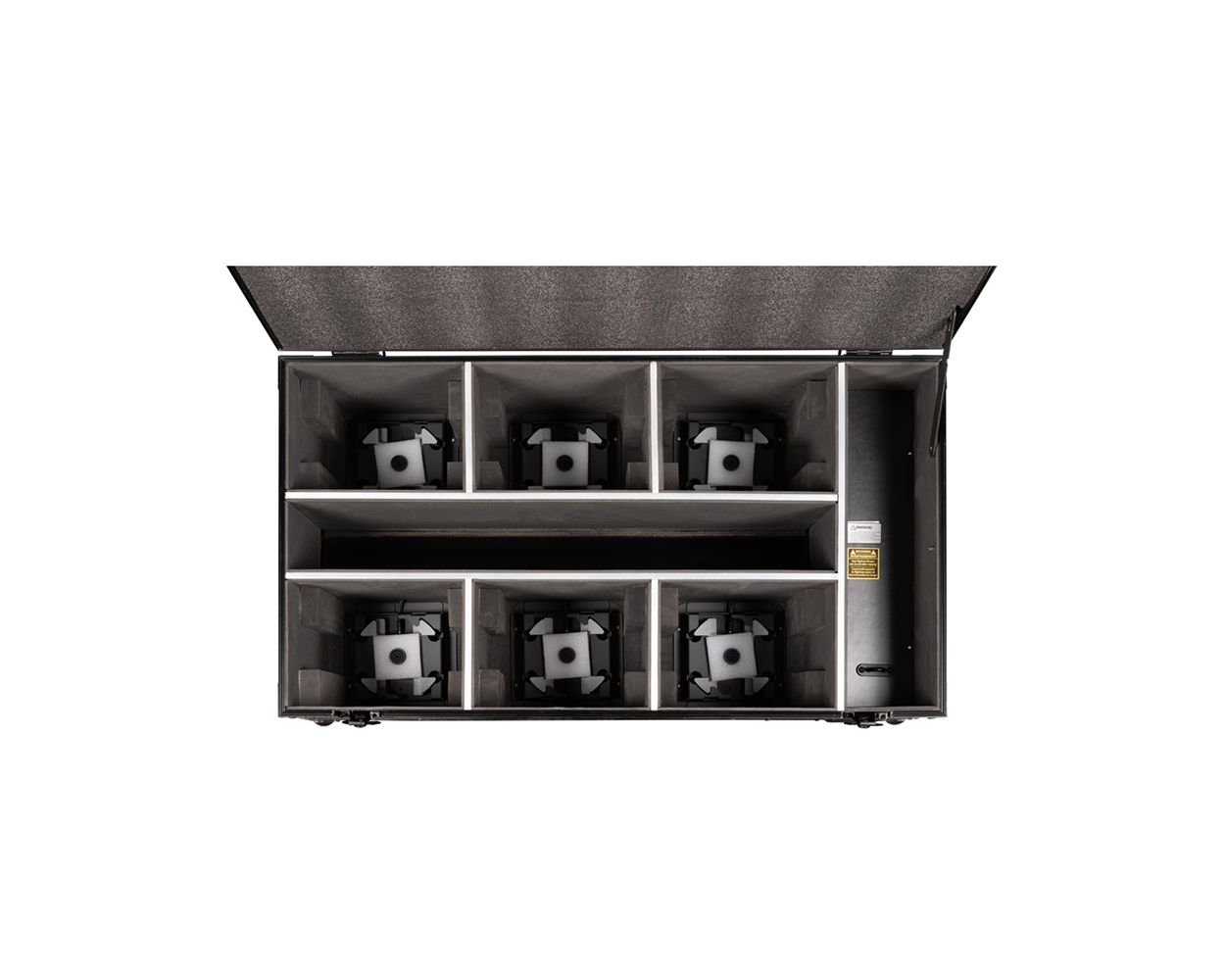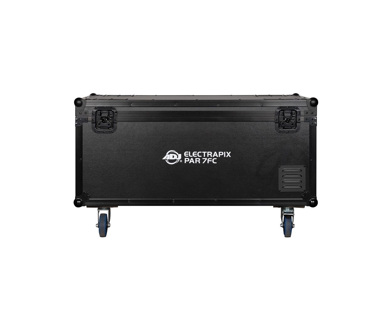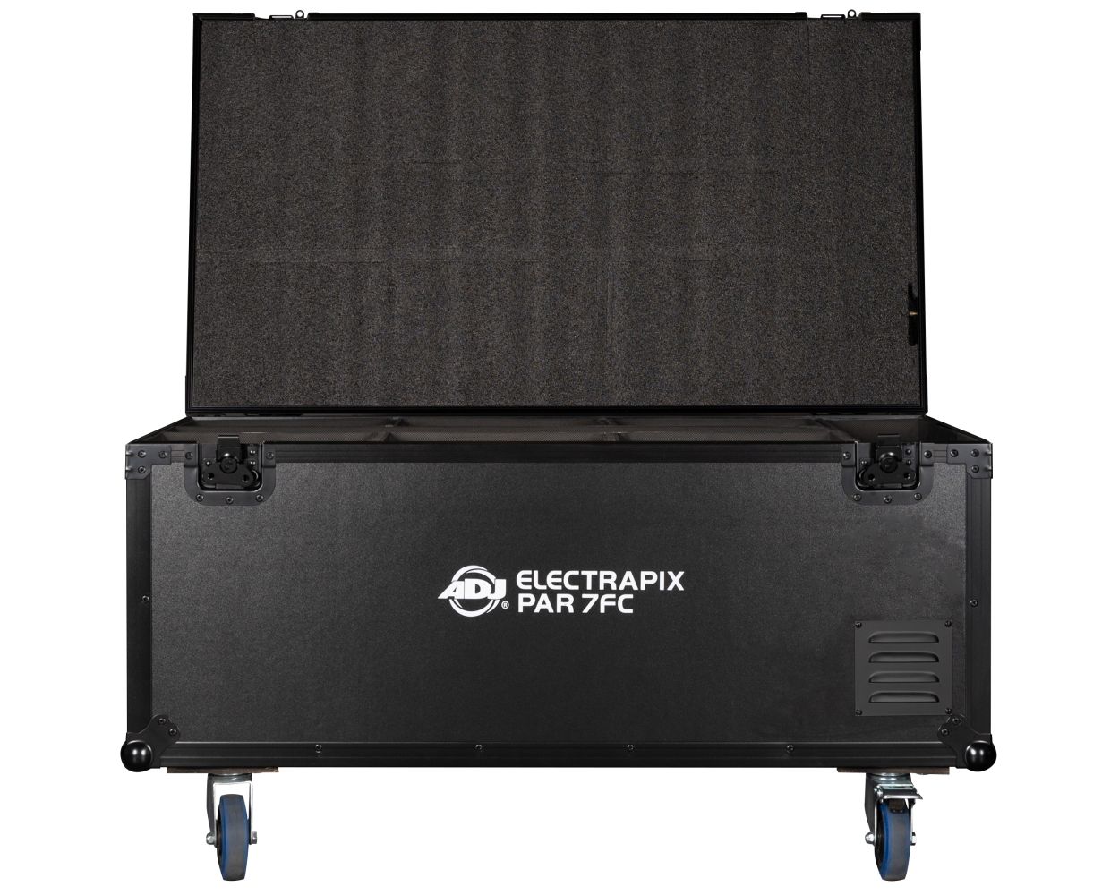 The ADJ ElectraPix Par 7FC rugged flight case securely houses, transports, and charges up to six ElectraPix Par 7 fixtures, with a built-in power supply and infrared remote.