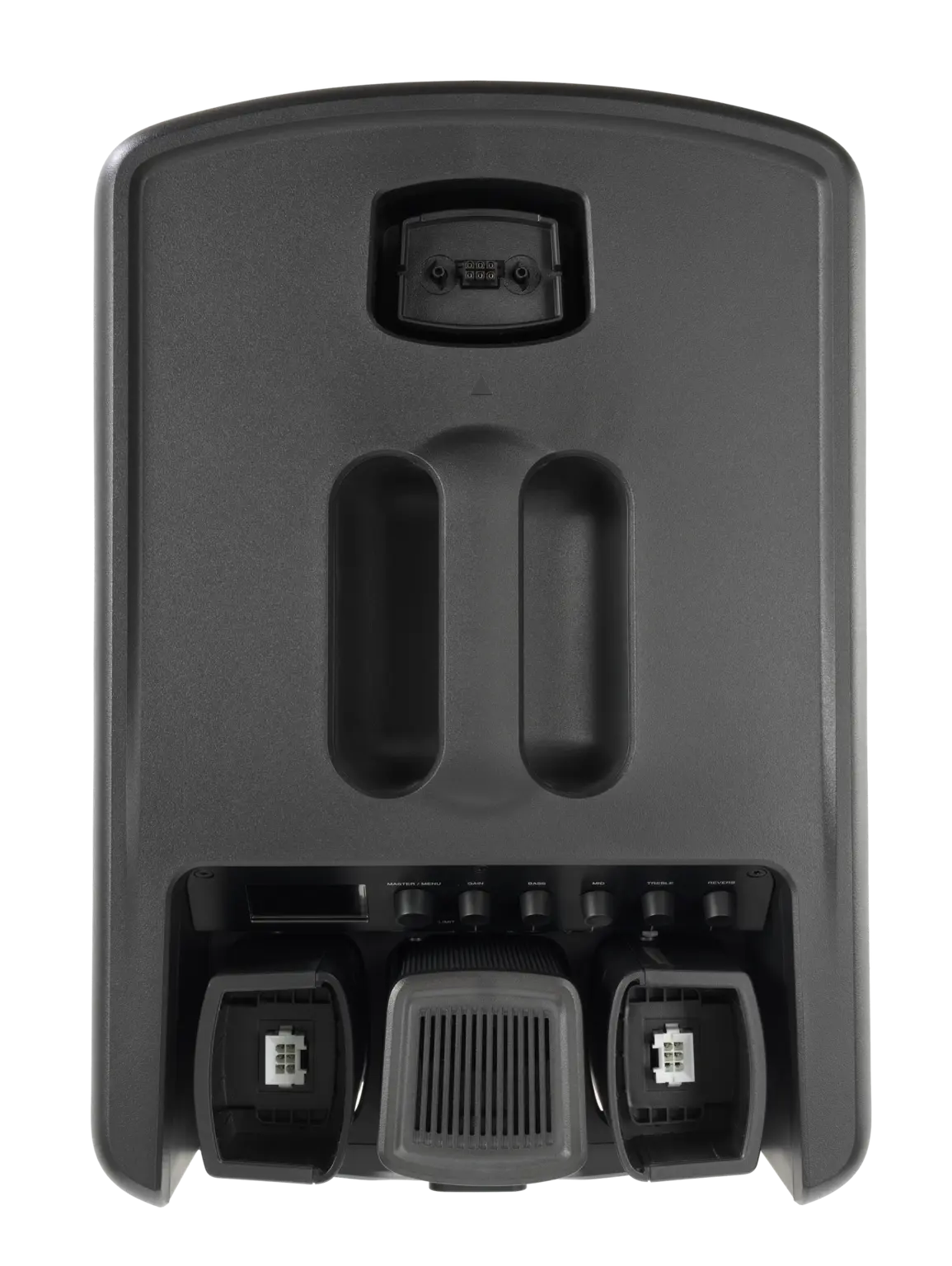 - PA components are stored in the woofer cabinet for easy, one-hand carry