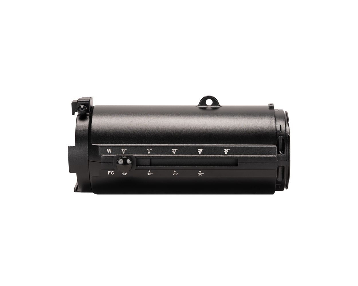 Introducing the EP LENS MINI FZ Fresnel Lens Barrel with an integrated eyelet for safety cable attachment, designed for enhanced security during installations. Featuring manual zoom functionality, this versatile accessory offers a zoom range of 12° to 30° when paired with the Encore Profile Mini WW, and 12° to 26° when used with the Encore Profile Mini Color. Achieve precise control over light dispersion and focus to illuminate your desired space with optimal clarity and flexibility.