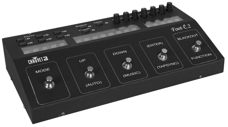 - Full-featured compact DMX foot controller with up to 36 channels of control