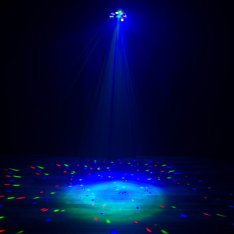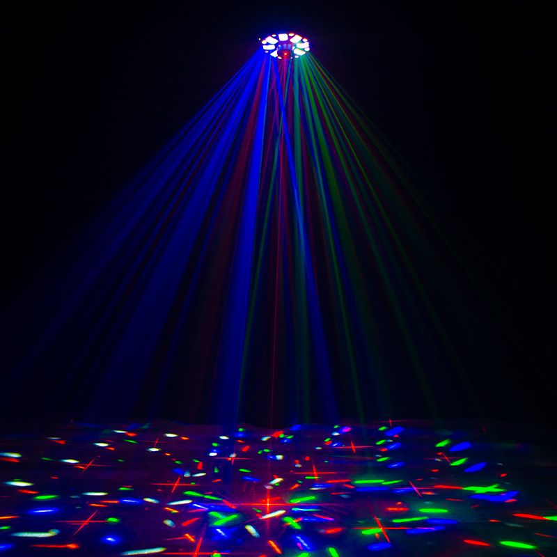 An exhilarating party lighting effect, the Furious Three RG is a 3-FX-IN-1 lighting effect - utilizes three light sources – six 5W 5-penta LEDs, eight 3W quad LEDs and a red and green laser – to give users a Moonflower/Wash/Laser combo effects that create a high level of enjoyment for party guests.