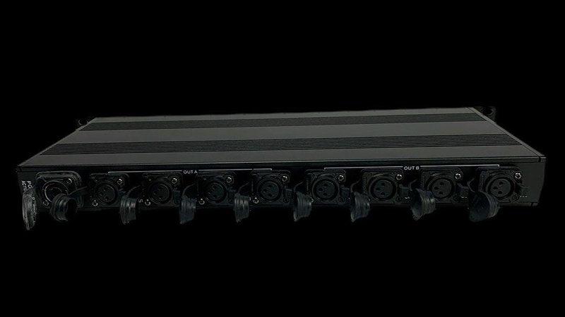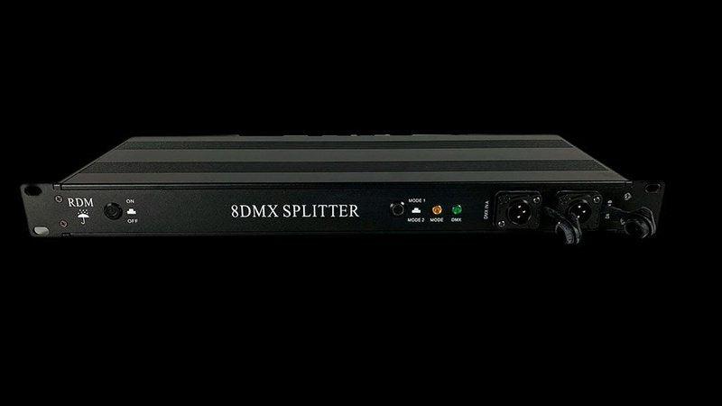 A simple, 2-port DMX splitter. (2) DMX plugs in, (8) DMX plugs out, nice and simple.
