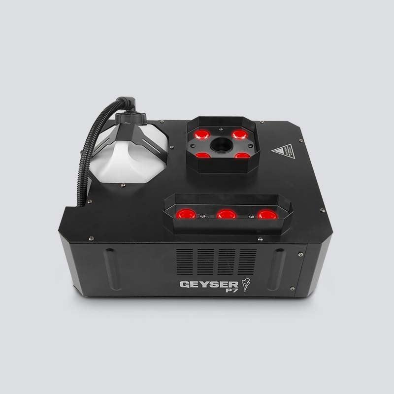 Geyser P7 is a dynamic pyrotechnic-like effect that creates thrilling bursts of fog lit with seven 9-watt penta-color (RGBA+UV) LEDs for endless color capabilities.