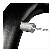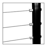 Gym Light Cages with 30" end sections have 19 pre-terminated 1/8" aircraft cables which connect to pairs of internally threaded posts. Cages with 36" end sections have 27 cables. Stiffeners for the cables are provided for lengths over 118"