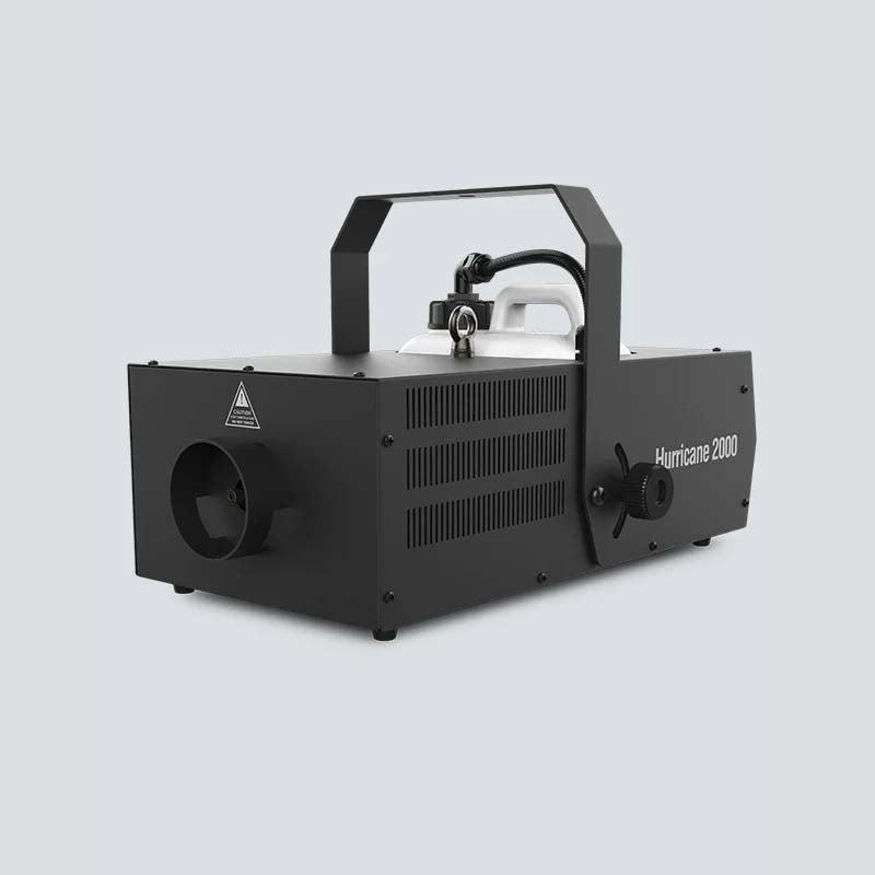 Hurricane 2000 is an event-ready, high volume fog machine that produces a thick plume on demand. It features a PowerCON®-compatible power input connection and 3- and 5-pin DMX input/output connections for quick setup options.