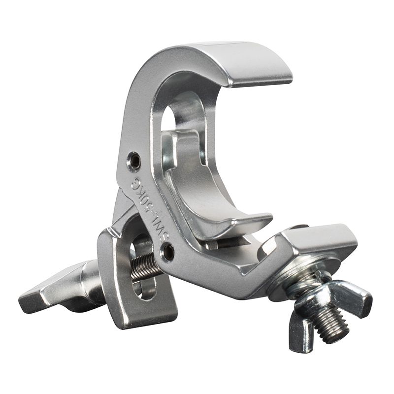 Small silver quick rig style clamp for F23 & F24 type truss. Max Load: 50kg / 110 lbs.