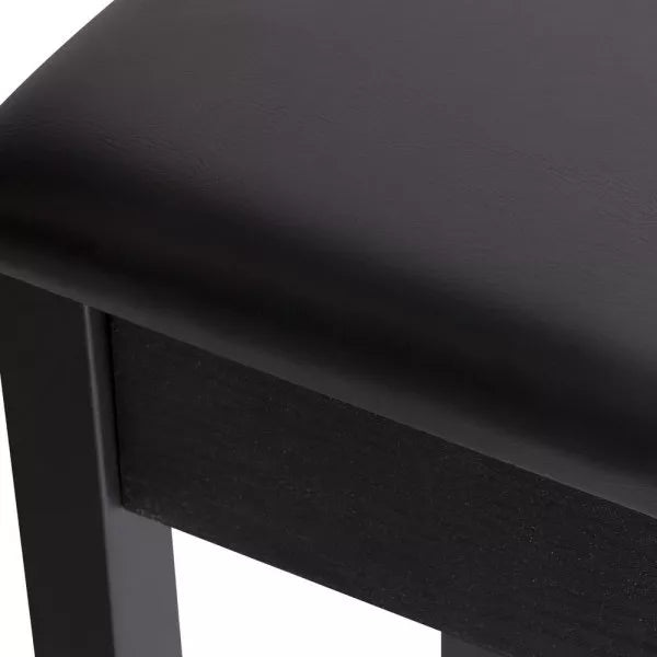 An attractive complement to any piano or keyboard, our KB8802B Keyboard/Piano Bench features a soft yet firm seat cushion with a ventilated cover to provide cool comfort and support. Its solid wood base with rubber feet delivers slip-free stability while displaying elegant optics for the stage.