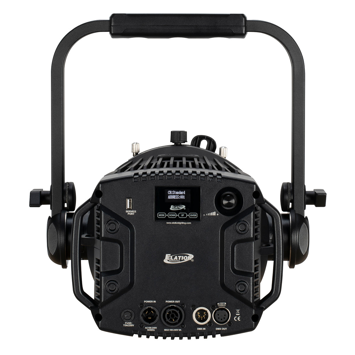 The 92 CRI engine utilizes a 5-color homogenized LED array consisting of Red, Green, Blue, Mint, and Amber sources with a power of 305W. The carefully tuned LEDs ensure accurate color reproduction while delivering a powerful output of over 10,000 lumens. Virtual color temperature, Magenta / Green adjustment provide the designer with immediate access to the impressive LED color array. Exceptionally quiet, the fixture offers enhanced fan controls down to Elation’s Mute Mode which disables the internal cooling fan.