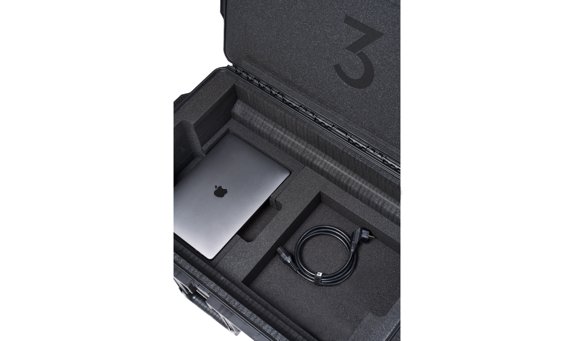 It comes with rugged in-line wheels and a retractable extension handle for convenient travelling. Five press-and-pull latches and two padlockable hasps ensure safe transport of your device. Variable foam plates inside can be removed to place accessories like cable or even a laptop (maximum dimensions for laptop: 36 x 25 cm).