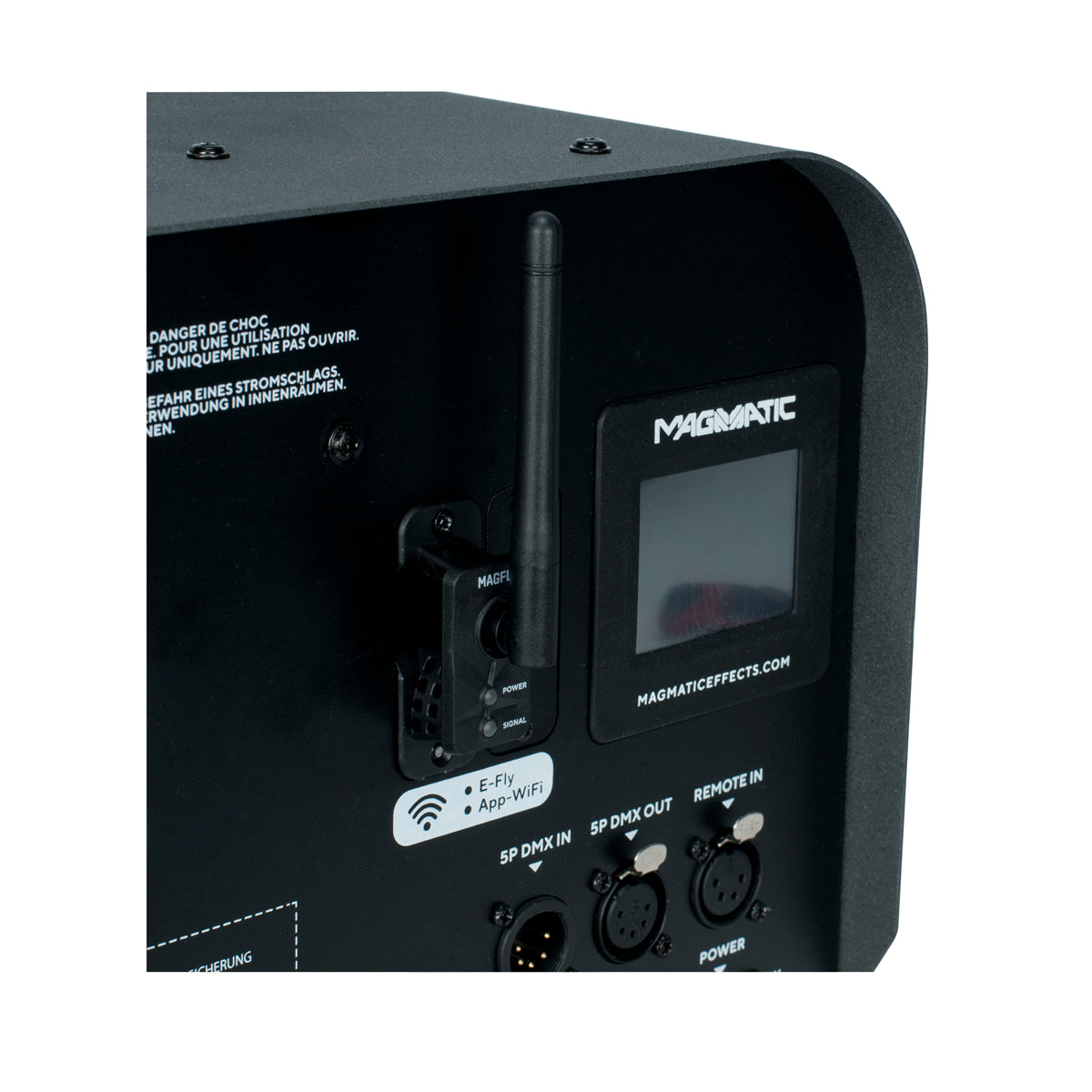 MAGFLY is a wireless DMX receiver card compatible with all Magmatic foggers, hazers, snow machines, CO2 simulators, low lying, and bubble machines. Compatible with Magmatic Magfly and Elation Efly transceiver's.