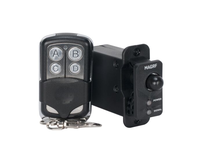The Magmatic MagRF™ is a 433-MHz wireless remote control that is compatible with all Magmatic foggers, hazers, snow machines, CO2 simulators, low lying, and bubble machines. Once the receiver unit is installed, it has an effective range of up to 150-feet with clear line-of-sight (50-meters) to manually control the output of your Magmatic machine.