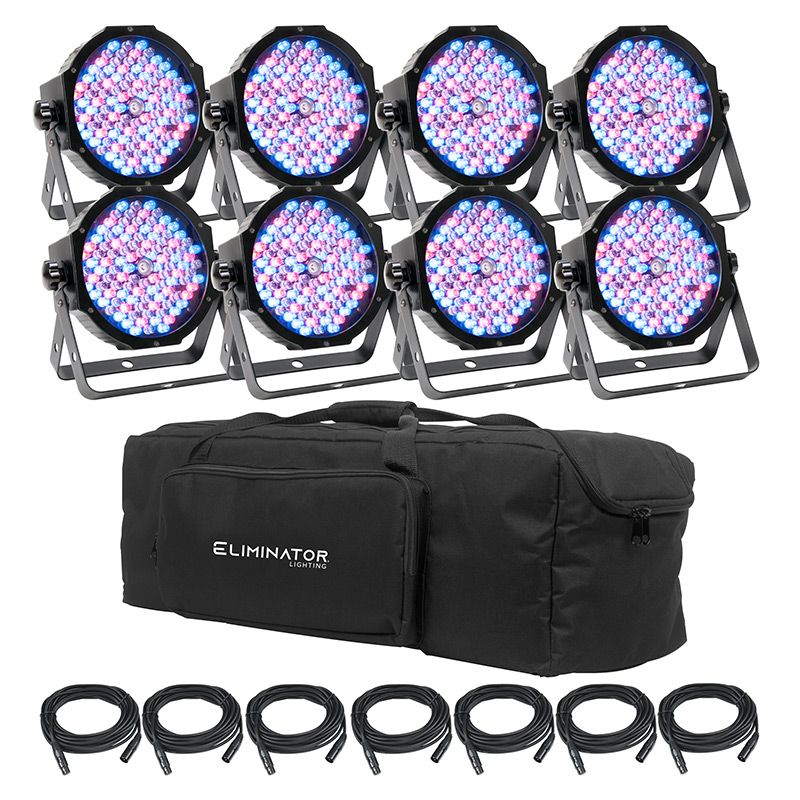 The Eliminator Lighting Mega Flat Pak EP is a convenient solution for the mobile entertainer to provide uplighting or mobile stage at any event It includes eight (8) of the popular Eliminator Lighting Mega Par Profile EP LED Wash Fixtures, (8) IEC to Edison power cables and a soft carrying case to protect your Mega Par Profile EP’s during transport and dust-free while storing.