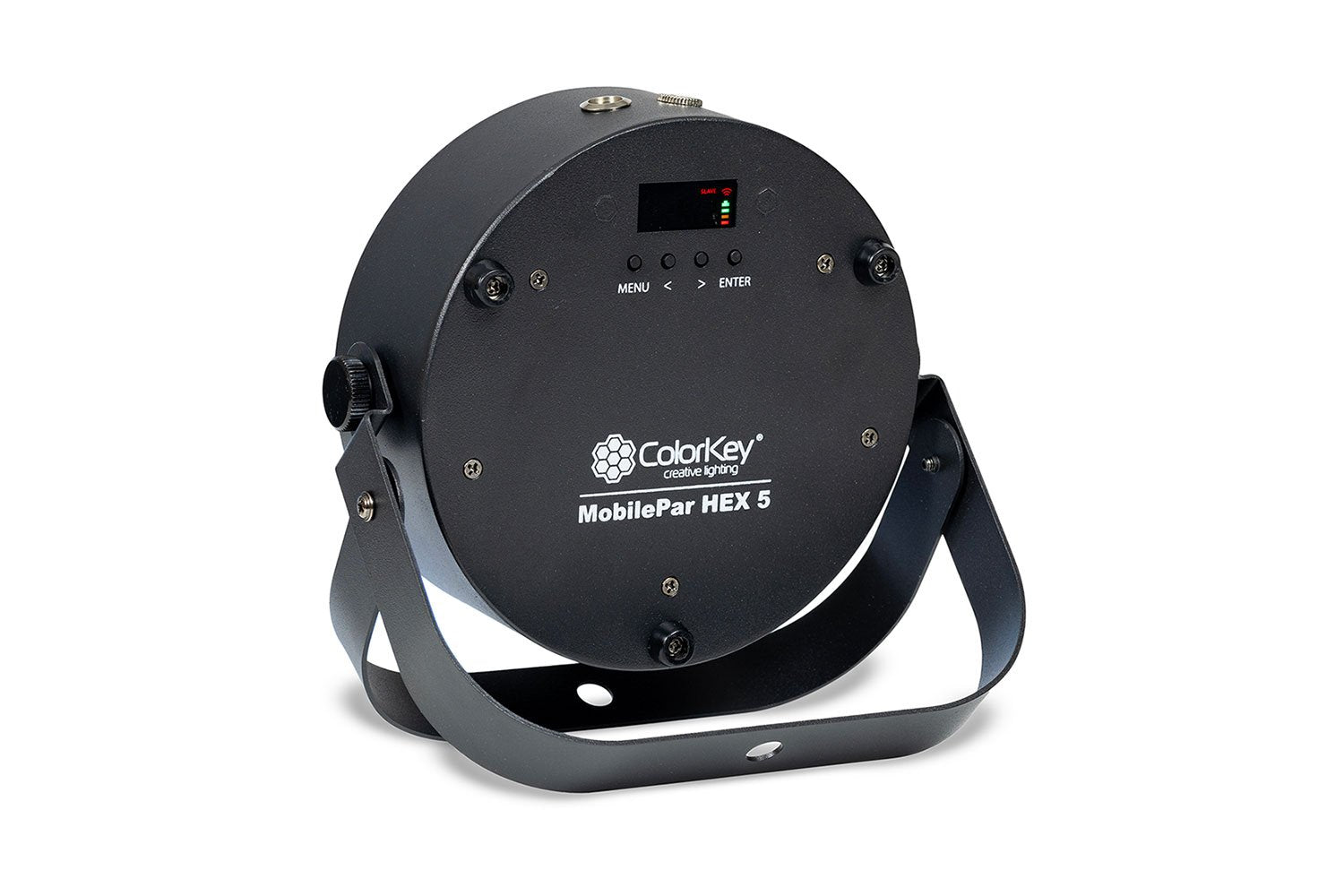 The ColorKey MobilePar HEX 5 is a compact, battery-powered LED par light, delivering vibrant color washes and advanced wireless control.