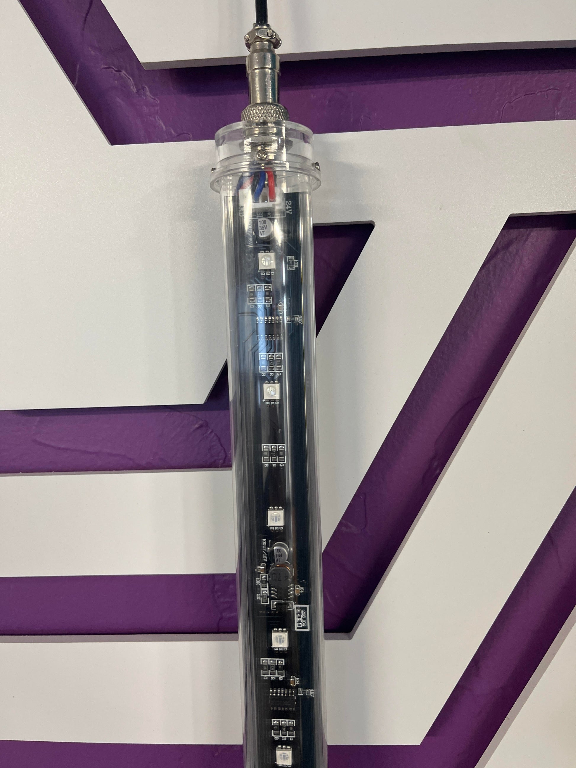 These pixel tubes for the ModScenes hoists are really awesome! They give you 24 segements of pixel control for a really high-definition look. The frosted outside catches the light from the LED's inside really well, you just do need to be careful how much outside light hits these (i.e. from frontlight), as they do catch light well from all directions!