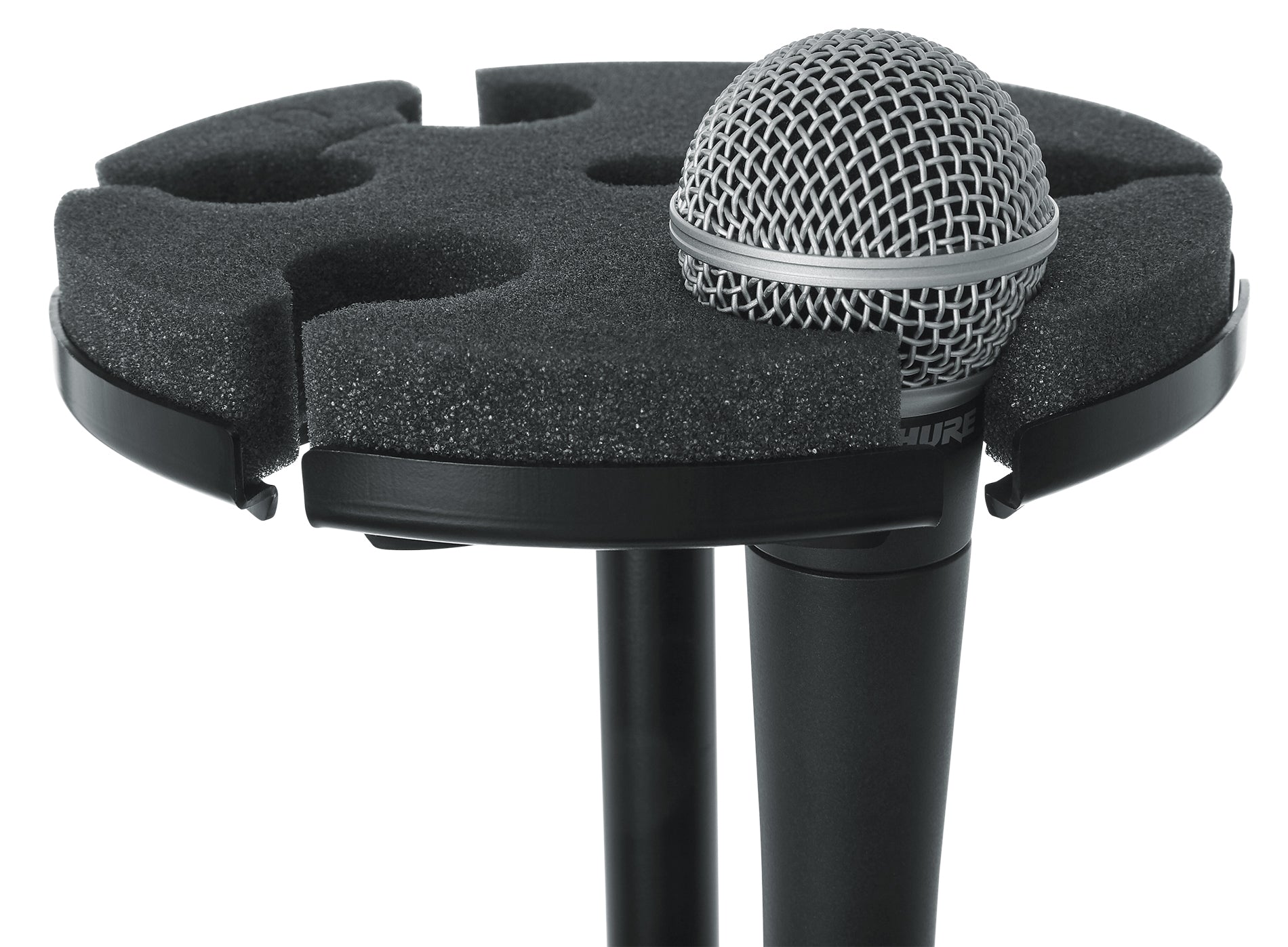 Foam microphone cradle holds up to six (6) wired or wireless microphones