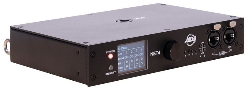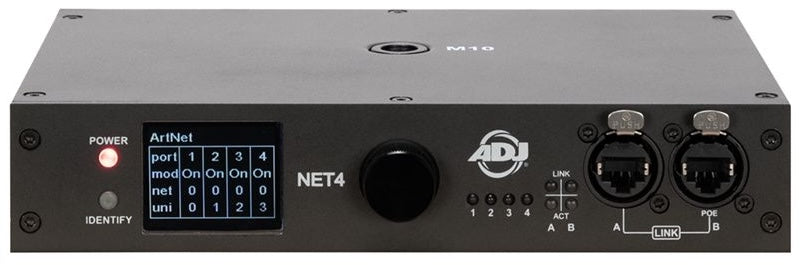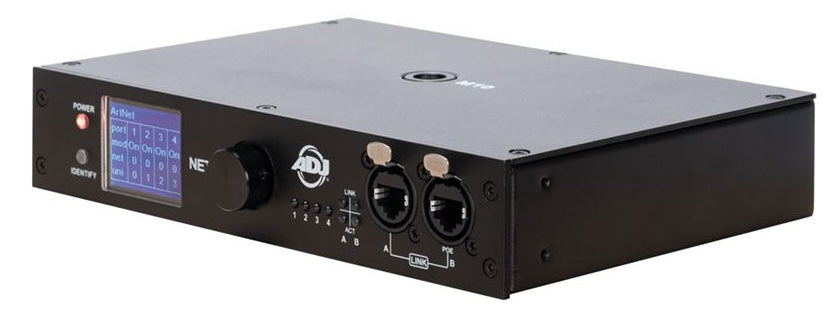 The NET 4 is a DMX over Ethernet node. It can be truss mounted and is easy to configure with the LED display.