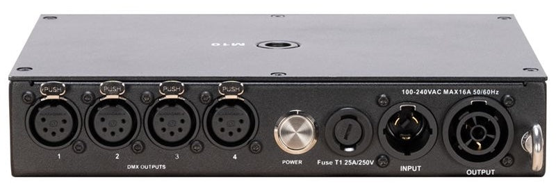 NET 4 is a versatile 4-port DMX over Ethernet node that can be truss mounted with M10 or M12 threads or rack mounted using the optional Aria X2 shelf. It is compatible with DMX-512, RDM, Artnet and sACN protocols, ensuring a broad spectrum of integration possibilities. The 1.7-inch LED display facilitates easy configuration, allowing you to fine-tune settings and monitor status at a glance.