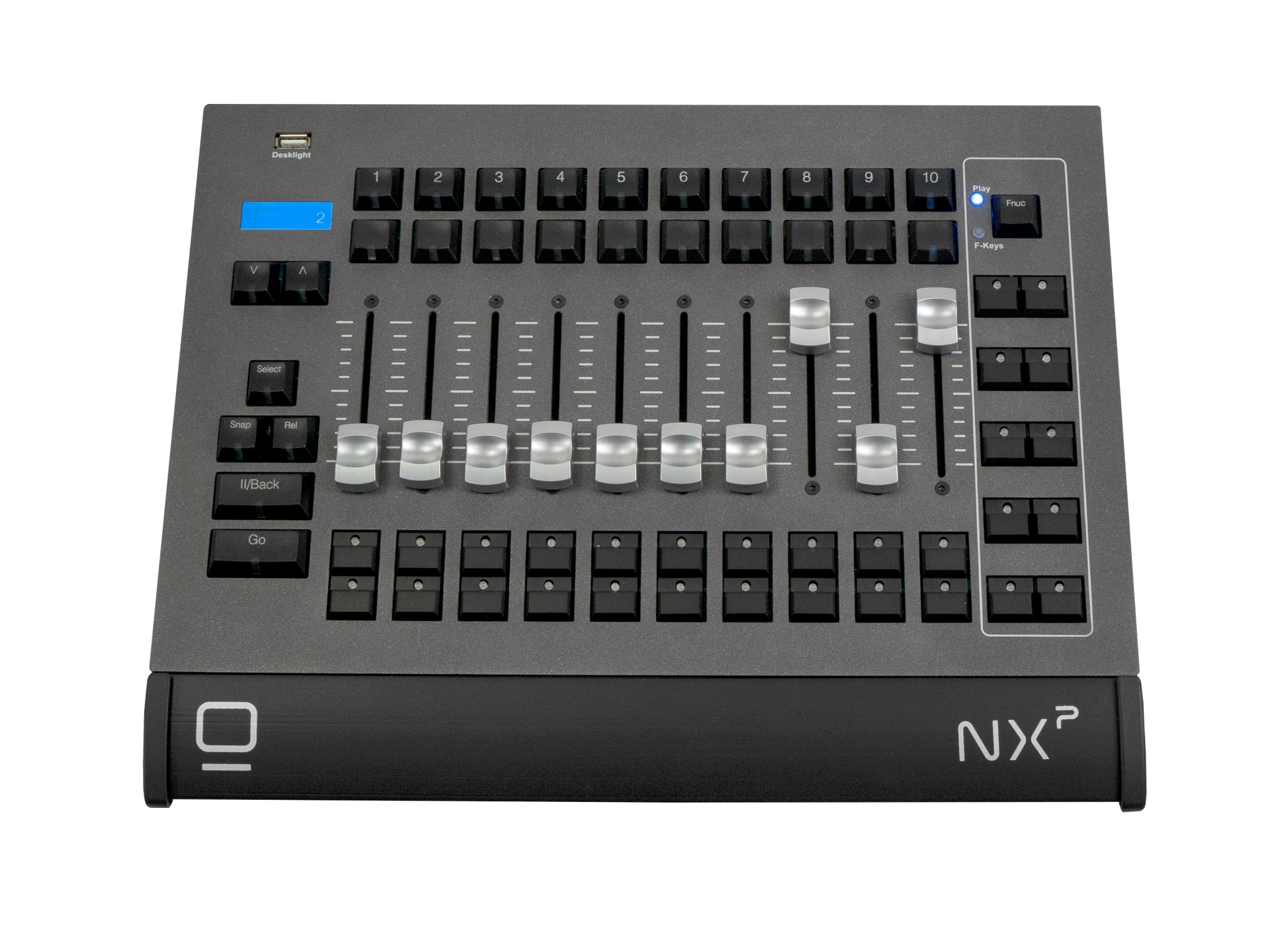 The ONYX NX P fits in perfectly with the NX K and NX 1 consoles as a complete, 20-motorized fader console with full programming section and more! Or, grab the NX P and use it by itself with a PC. Or plug it in to an ONYX console for an additional 10 faders. Or grab up to 16 of these and plug them into a ONYX console for 160 additional faders and 160 playback buttons! The choice is yours!
