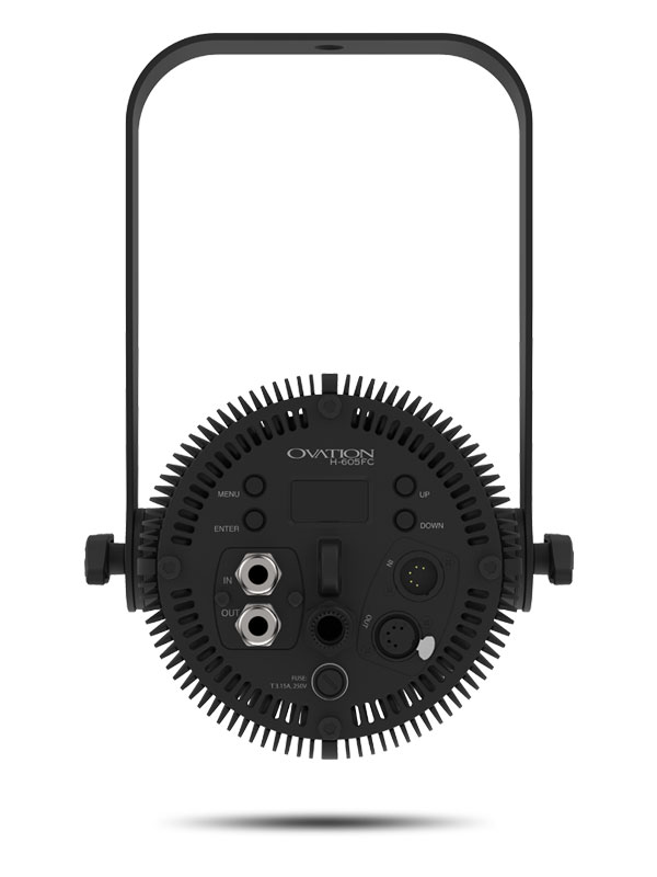 The Chauvet Professional Ovation H-605FC uses LED technology and the Ovation standard RGBA-Lime color palette to reproduce almost any color. This fixture has excellent color rendering and can recreate practically any white color temperature. Superior convection cooling delivers high output in a small package. With the addition of W-DMX, RDM, adjustable PWM, and an easy-to-navigate OLED full text display, this unit is ideal for theatrical and house of worship applications.