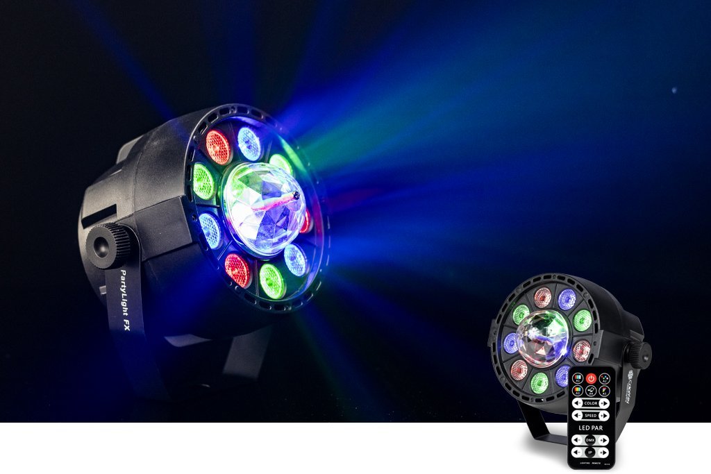 PartyLight FX – Compact LED Wash Light with Motorized RGB Party Bulb Effect